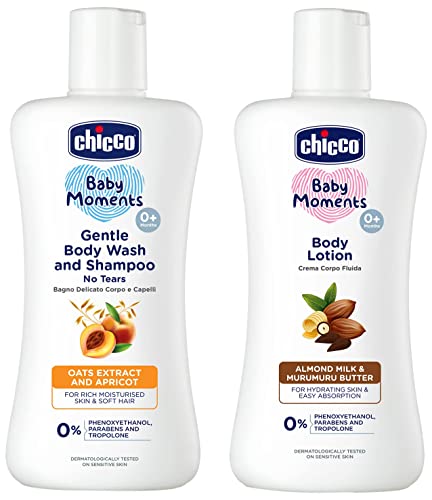 Chicco Baby Moments Gentle Body Wash and Shampoo is a product for infants. This baby bath product does not irritate or harm your baby's delicate skin. The skin of your little one is very sensitive and consequently susceptible to rashes and allergies. Therefore you should choose their skin-care products with cautiousness. This gentle cleansing product from Chicco ensures that your baby's skin stays soft and clean. This product is made of natural extracts from oats and produces a lot of foam. It makes bathing an enjoyable experience for babies. Besides the presence of iso-lachrymal neutral pH makes sure the eyes of your baby do not tingle as a result of coming in contact with this product. Chicco is a manufacturer of a wide range of baby-products. The products of this company comply with high standards of safety and are suitable for children. Natural oat extract has a soothing effect on your baby's skin The natural oat extract in this baby product has a soft and soothing effect on your baby's skin. It also prevents the skin of your baby from becoming dry. A product free from dyes and alcohol This baby product is free from dyes and alcohol and gentle to your baby's delicate skin. In order to buy baby products online you can retailer sites that are listed on Junglee. Does not contain SLS SLES and parabens This Chicco Gentle Body Wash and Shampoo is free from SLS SLES and parabens. These artificial elements have not been used in this product so that the gentleness and buttery smoothness of your baby's skin remain unaffected. Contains Iso-lachrymal neutral pH This baby body wash and shampoo contains iso-lachrymal neutral pH which is gentle to the eyes of babies. This product is also tested by dermatologists for effective cleaning of your baby's skin without making it dry.