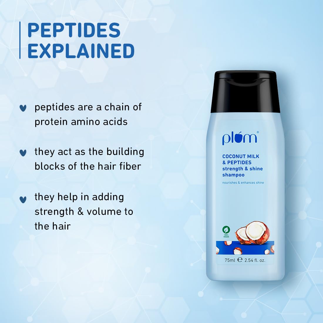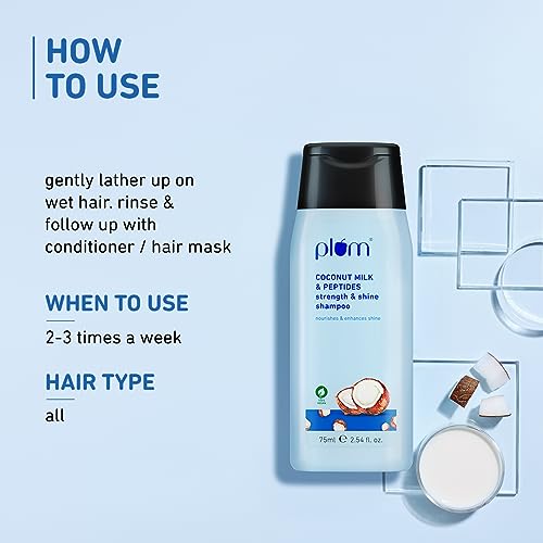 This nourishing shampoo is enriched with coconut milk which enhances shine and peptides which strengthen hair strands. 22x shinier hair in 1 wash*! Why you'll love itThis nourishing shampoo enhances shine and smoothens strands. This shampoo also helps add volume to hair. The blend of coconut milk & peptides helps restore hair moisture & keeps hair healthy. ⢠Paraben-freeâ⢠Phthalate-freeâ⢠Cruelty-free⢠100% vegan as always! What makes this shampoo unique?The gentle cleansing formula is good on the scalp and is nourishing too. The fusion of coconut milk & peptides helps in giving a smooth sleek look right from the first wash! Enriched with coconut milk & peptides For all hair types Use 2-3 times a week for shiny hair! Benefits: Enhances shine Strengthens strands Adds volume to hair Helps restore hair moisture Hair Type: Good for:All hair types USP: 22x shinier hair in 1 wash* Smooth shiny hair from the 1st wash Strengthens strands and adds volume to hair Coconut Milk: Is rich in vitamins which helps enhance shine and moisturises hair strands to give soft smooth shiny hair. It also helps in rejuvenating dry hair. Peptides: Pea Peptides help strengthen hair strands and stimulate hair follicles. They also add volume to hair and give a silky-smooth finish.