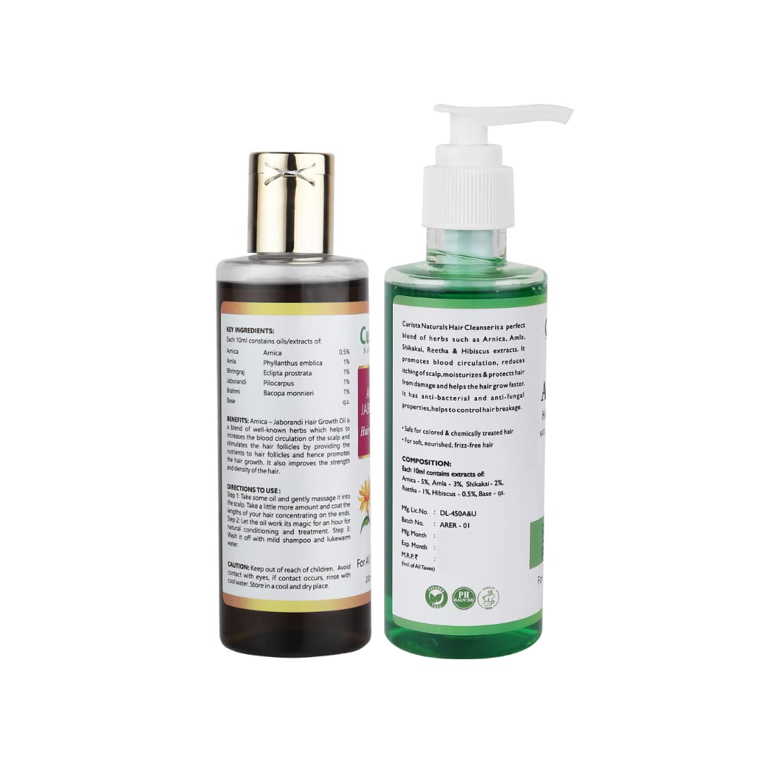 Curista Naturals Ayurvedic Hair Growth Oil 200ml and Hair Cleanser & Mild Shampoo | Hair Fall Control | Natural Ingredients Like Bhringraja Amla and Brahmi - Combo- 200ml Each