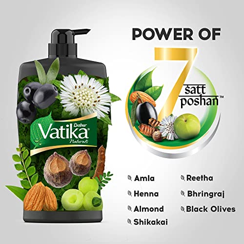 Dabur Vatika Long & Black Shampoo is enriched with the goodness of seven natural ingredients for long shiny black hair . Our formulation provides gentle cleansing & conditioning which gives extra nourishment to your hair & helps maintain it's shiny natural colour. It is enriched with Amla which helps stimulates hair growth & maintain hair's natural colour and Bhringraj which strengthens hair follicles and facilitates hair growth. Along with these it contains the goodness of other natural ingredients like Shikakai Henna Almond Reetha and Olive which helps make your hair long & shiny.