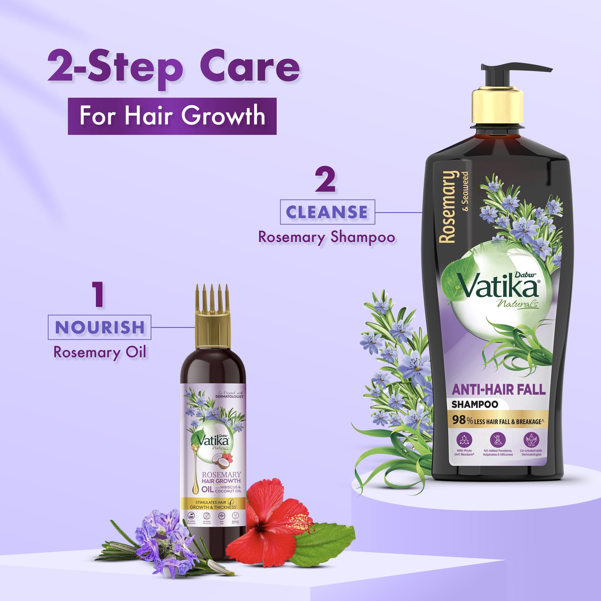 New Vatika Anti Hairfall shampoo enriched with the natural goodness of Rosemary and Seaweed. Rosemary is a scientifically studied herb that stimulates hair growth and improves blood circulation. It also prevents hair loss by blocking DHT. Taken from the depths of marine life Seaweed a natural cleanser is abundant in nutrients that can make hair strands stronger and more resistant to breakage. So try now for 98% less hairfall and breakage