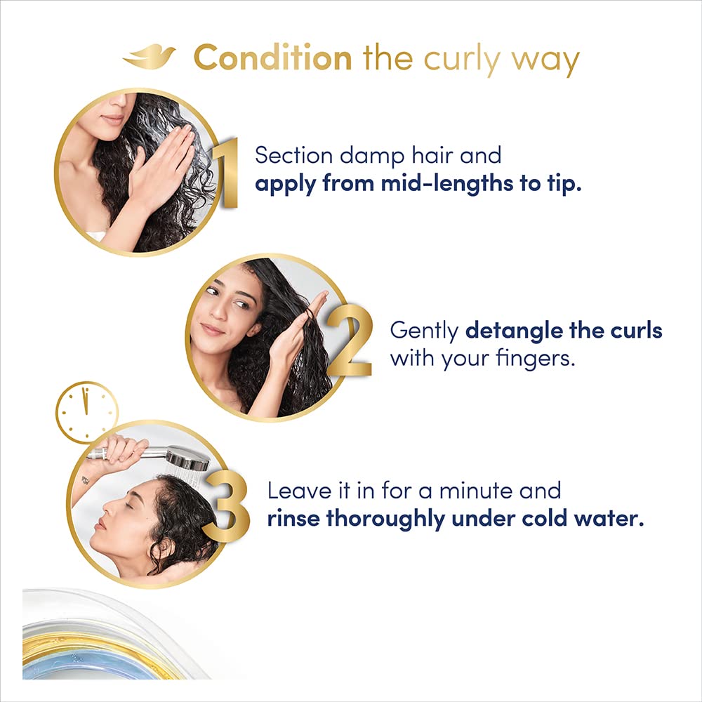 Dove understands curly hair is different. All curls have natural twists and turns which form their beautiful shape but they do tangle a tad bit more don't they? Luckily we have got a caring and nourishing solution crafted for your uniquely curly hair. Dove Beautiful Curls Detangling Conditioner locks in moisture to give you tangle-free smooth and velvety soft curls that you've love running your fingers through. What's in? Hydrating ingredients like Shea Butter Coconut Oil & Glycerine. What's out? No sulphates no parabens no dyes. The good news is that your hair will break less so you can stress less and spend less time fighting those tangles. Curly or wavy hair? Dove Detangling Conditioner will nourish them all leaving them wrapped in a delicate nourishing fragrance. It is free from sulphate paraben and dyes which makes it suitable even for coloured curls. Here's what you got to do. Simply apply from mid-length to the tips on damp curly hair keep it on for one minute and rinse. Effortlessly detangled hair is all yours.Here's an expert tip: Follow it up with Dove Curl Defining Gel for curls that look good and feel even better and stay like that for longer.