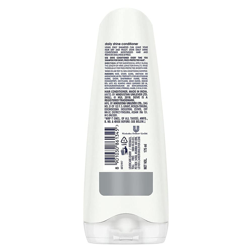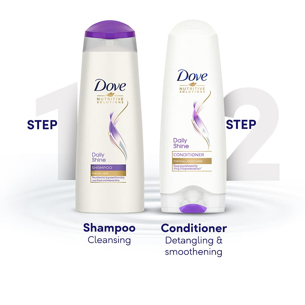 Ask us how to make hair shiny and we'll tell you that the answer is easy: use a nourishing conditioner that smoothens and strengthens. Because when hair is sleek and conditioned it reflects more light giving that beautiful shiny finish. Protect the health and shine of your hair with the daily shine conditioner from Dove. Enriched with our nutritive serum Dove daily shine conditioner smooths over the strands' cuticles leaving soft silky hair with ed strength and shine from the very first wash. All you need to do is apply a small amount of conditioner to your hair from mid lengths to tips and rinse it off after a minute to get shiny and manageable hair every day. And because we don't want daily wear and tear to get in the way of our shine it protects hair from future damage even from your brush. Not only does the formula give visible results after the first use but it makes hair better making it look healthy. For hair that's soft smooth and beautiful with every wash Dove daily shine conditioner is an ideal ition to your hair care routine. Based on lab test with Dove daily shine system vs non-conditioning shampoo Ingredients Water Cetearyl Alcohol Dimethicone and Amodimethicone and PEG-7 Propylheptyl Ether and Cetrimonium Chloride Glycerin Behentrimonium Chloride Perfume Stearamidopropyl Dimethylamine Sodium Chloride Disodium EDTA Lactic Acid DMDM Hydantoin Helianthus Annuus (Sunflower) Seed Oil Methylchloroisothiazolinone and Methylisothiazolinone Alpha-Isomethyl Ionone CitronelLinalool CI 19140 CI 15985.