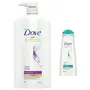 Dove Daily Shine Shampoo 1 L For Damaged or Frizzy Hair Makes Hair Soft Shiny And Smooth - Mild Daily Shampoo for Men & WomenThe mystery of how to get shiny hair isn't a tricky one to solve anymore. The key to getting shiny damage protected hair is making sure your hair is nourished from the start of your routine. That's where Dove Daily Shine Shampoo comes in. Dove Daily Shine Shampoo with Nutritive Serum builds a protective shield around the hair fiber and defends your hair from daily hair damage. It is a pleasant hair cleanser that gives you voluminous and healthy looking hair. With sunflower oil this Dove shampoo not only cleans your hair but gives you voluminous hair. It gives protection from the aggression your hair faces every day. Its Nutritive Serum formula absorbs into the hair strands to keep them beautifully nourished and shiny this Dove shampoo surrounds your hair with a protective shield defending it from everyday stresses like brushing damage. With regular use Dove Daily Shine shampoo makes your hair smooth shiny and beautiful looking. This Dove shampoo cleanses from roots up as well as it helps make your hair look healthy. The result? Beautifully shiny strong and silky hair which is everything you want it to be. *Based on lab test with Dove Daily Shine System vs non-conditioning shampooDove Dryness Care Shampoo 340 ml With Pro-Moisture Complex for Dry Hair & Scalp Gives Soft Smooth Damage Free Hair - Daily Shampoo for Men & WomenHarsh humid weather taking a toll on your beautiful hair causing damage with every passing day? Guard your hair against harsh weather. Crafted from a perfect blend of ingredients the shampoo helps to restore hair softness and smoothness. To help prevent daily hair damage Dove Nutritive Solutions Dryness Care Shampoo nourishes normal and dry locks for healthy looking hair. The shampoo cleans your dry locks and gives it a shiny and glossy look. The specially designed formula of this dryness care shampoo is perfect for days when your dry hair needs help. Dove Dryness Care Shampoo is just what you need for smooth and bouncy hair! This moisturizing and nourishing shampoo helps to protect hair from damage for silky soft locks. Uniquely formulated with Pro-Moisture Complex this Dove shampoo nourishes hair strands from within. Dove Dryness Care Shampoo nourishes hair with each application for strong hair thatâs manageable and healthy looking. Gently massage this shampoo into your scalp to create a lather and rinse well. After wash this shampoo makes your hair look glossy and locks dryness of your hair. Smooth soft and more resilient to daily damage from grooming and brushing beautiful hair is just one wash away with this nourishing shampoo.