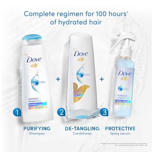 Is your hair increasingly becoming prone to dryness roughness to the extent that it tends to become stiff and doesnât move naturally. The dryness in your hair is your hair asking for hydration. Dry rough hair is indication of beginning of damage. Your hair is experiencing the onset of damage and loss of water balance is one of the possible causes. Dove understands this and hence brings to you an effective solution that helps restore the water balance leaving hair hydrated for upto 100 hours^ with regular use. Introducing Dove Glycolic + Hydration conditioner- enriched with 5% Hydra-Glycol~ and Bio-Protein care that helps in repairing hair and restoring hydration. For the first time in India Dove has introduced 5% Hydra-glycol~ technology with the new Dove Glycolic+Hydration range. 5% Hydra-Glycol~ includes hydrating glycerin sodium gluconate glycolic acid propylene glycol - together these effectively hydrates your dry hair. The Result - dry stiff hair becomes hydrated and fluid as if flowing like water moving effortlessly as you go about your day. Disclaimer: ^Based on lab tests with Dove Glycolic+ Hydration range versus non-conditioning shampoo with regular use ~5% Hydra-Glycol~ is a combination of glycerin dimethicone amodi-methicone glycolic acid propylene glycol and sodium gluconate.