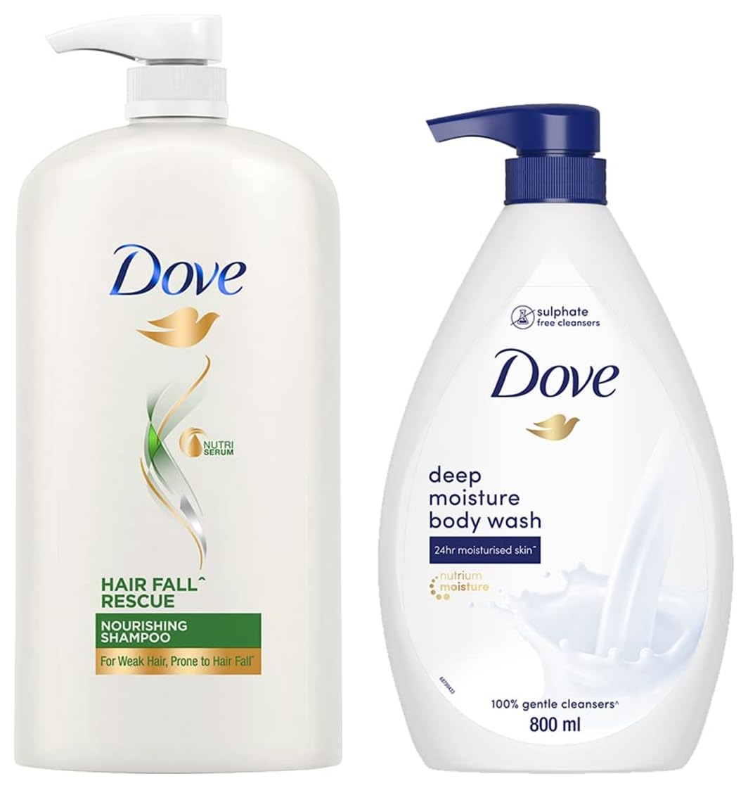 Dove Hair Fall Rescue Shampoo 1LWe love the feeling of beautiful hair â but daily damage can leave your hair prone to breakage. Let hair fall be an issue of the past. Use the hair fall rescue shampoo from Dove regularly to get thick and luscious hair as the shampoo works to reduce hair fall by up to 98 percent . Specially formulated for better hair fall control Dove nutritive solutions hair fall rescue shampoo strengthens and nourishes fragile hair from roots up. Perfect as a daily hair fall treatment the gentle formula fortifies strands to reduce hair fall . Enriched with nutrilock actives our best shampoo for hair fall immediately seals cuticles and strengthens strands to help minimize hair fall due to breakages leaving them looking fuller. Healthier hair means lesser breakage and reduced hair fall . Buy Dove hair fall rescue shampoo and forget your hair fall troubles. Leaving your hair feeling strong and beautiful day after day. Say no to hair fall worries and do more in life. Dove hair fall rescue lets you be stronger bolder and closer every day. Hair fall refers to hair breakage based on a lab test with Dove hair fall rescue system vs non-conditioning shampoo.Dove Deeply Nourishing Body Wash 800 mlWho doesnât like having smooth skin? We all want to keep our skin looking healthy nourished and well cared for and itâs much easier to make that a regular part of your routine if youâve found a moisturising body wash. This moisturising body wash combines Nutrium Moisture⢠with mild cleansers to help your skin retain its natural moisture leaving you with softer smoother skin. There are 631 million beautiful women in India. Women of all ages shapes sizes and skin tones. Yet as a society weâre often led to believe in a very limited idea of beauty. And while youthful looks fair skin long black flowing hair and a trim figure are some ways to express beauty â they are not the only ways. With your help we can represent the true diversity of beauty in India and empower every woman to realise her personal beauty potential. Together we can break the rules and change the face of beauty. We donât believe that the 631 million women living in India can possibly be represented by just one beauty ideal. Ours is a country rich in diversity and thatâs something we can all be proud of especially when it comes to beauty. We received an incredible response when we asked you to help us showcase #Real Beauty. We think that speaks volumes about how much we all want to see a more diverse range of beauty represented in India.