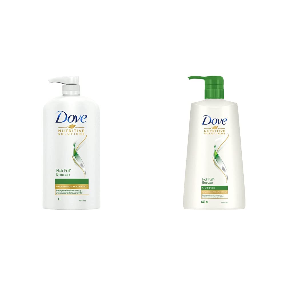 Dove Hair Fall Rescue Shampoo 1LWe love the feeling of beautiful hair â but daily damage can leave your hair prone to breakage. Let hair fall be an issue of the past. Use the hair fall rescue shampoo from Dove regularly to get thick and luscious hair as the shampoo works to reduce hair fall by up to 98 percent . Specially formulated for better hair fall control Dove nutritive solutions hair fall rescue shampoo strengthens and nourishes fragile hair from roots up. Perfect as a daily hair fall treatment the gentle formula fortifies strands to reduce hair fall . Enriched with nutrilock actives our best shampoo for hair fall immediately seals cuticles and strengthens strands to help minimize hair fall due to breakages leaving them looking fuller. Healthier hair means lesser breakage and reduced hair fall . Buy Dove hair fall rescue shampoo and forget your hair fall troubles. Leaving your hair feeling strong and beautiful day after day. Say no to hair fall worries and do more in life. Dove hair fall rescue lets you be stronger bolder and closer every day. Hair fall refers to hair breakage based on a lab test with Dove hair fall rescue system vs non-conditioning shampoo.Dove Hair Fall Rescue Shampoo 650mlWe love the feeling of beautiful hair â but daily damage can leave your hair prone to breakage. Let hair fall be an issue of the past. Use the hair fall rescue shampoo from Dove regularly to get thick and luscious hair as the shampoo works to reduce hair fall by up to 98 percent . Specially formulated for better hair fall control Dove nutritive solutions hair fall rescue shampoo strengthens and nourishes fragile hair from roots up. Perfect as a daily hair fall treatment the gentle formula fortifies strands to reduce hair fall . Enriched with nutrilock actives our best shampoo for hair fall immediately seals cuticles and strengthens strands to help minimize hair fall due to breakages leaving them looking fuller. Healthier hair means lesser breakage and reduced hair fall . Buy Dove hair fall rescue shampoo and forget your hair fall troubles. Leaving your hair feeling strong and beautiful day after day. Say no to hair fall worries and do more in life. Dove hair fall rescue lets you be stronger bolder and closer every day. Hair fall refers to hair breakage based on a lab test with Dove hair fall rescue system vs non-conditioning shampoo.