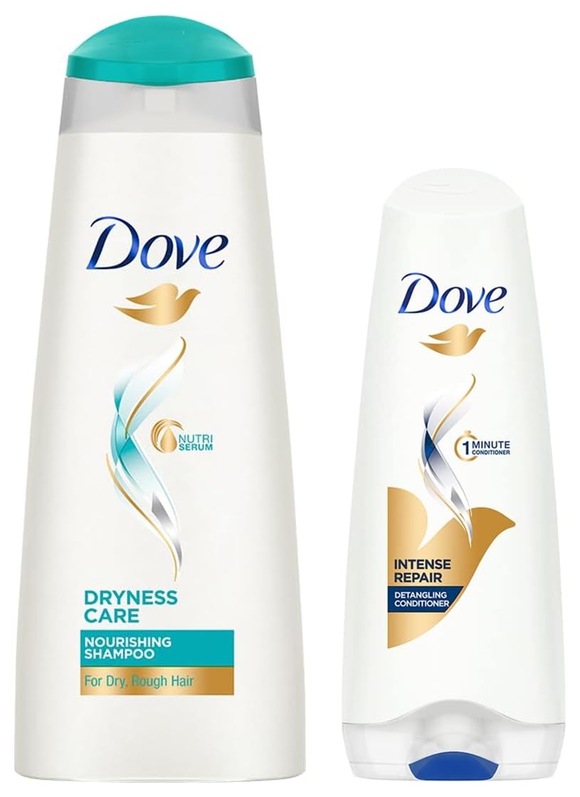 Dove Hair Therapy Intense Repair Conditioner 175mlDoes your hair get frizzy and unmanageable. Are you left wishing for a remedy to fix your frizzy tassels. Do you want to know the secret to fixing frizzy hair. Try new Dove intense repair conditioner. Control frizz with a nourishing conditioner thatâs formulated to nourish and help with frizz prevention. Formulated with keratin actives Dove intense repair conditioner helps to nourish dry and frizzy hair with two-way care. It controls external signs of dryness in the form of frizz while nourishing strands to help them look their best. This conditioner for frizzy damaged hair leaves hair visibly smooth and more manageable â giving you smoother hair that you will be proud of. Use it after your shampoo on damp hair for best results. This nourishing conditioner works immediately to smoothen the hair surface deeply nourishing to moisturize hair strands for healthier looking and smoother hair. With every use youâll be left with smooth shiny and beautiful hair. Buy new Dove intense repair conditioner and treat your hair to a look that will be the cause of envy among all your friends. Dove conditioners for 100 percent care. Based on lab test with Dove intense repair system vs non-conditioning shampoo.Dove Dryness Care Shampoo 340mlHarsh humid weather taking a toll on your beautiful hair causing damage. Guard your hair against harsh weather with the Dove dryness care shampoo. Crafted from a perfect blend of ingredients the shampoo helps to restore the natural balance hair making it soft and smooth. To help prevent daily damage Dove nutritive solutions dryness care shampoo gently nourishes normal and dry locks for healthy looking hair. The shampoo cleans your dry locks gently and gives it a shiny and glossy look. The specially designed formula of this shampoo is perfect for days when your dry scalp needs help. Dove dryness care shampoo is just what you need for smooth and bouncy hair. This moisturizing and nourishing shampoo helps to protect hair from damage for silky soft. Uniquely formulated with pro-moisture complex this Dove shampoo nourishes hair from within. Dove dryness care shampoo continues to nourish hair after each application for strong hair thatâs manageable. Smooth soft and more resilient to daily damage from grooming and brushing beautiful hair is just one wash away with this nourishing shampoo. Strength against hair breakage based on lab test with Dove dryness care system vs. Non-conditioning shampoo.