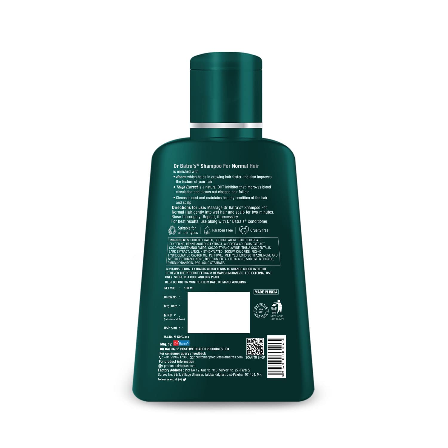 Dr Batra's range of hair care products for normal hair are carefully formulated with gentle ingredients that help control hair increase hair volume and strengthen the hair follicle from root to tip. Dr Batra's Shampoo made with natural extracts is a mild shampoo for normal hair. Strengthened with Thuja occidentalis (white cedar) it helps to inhibit DHT thus reducing the of hair . Enriched with Dr Batra's Shampoo is the best shampoo for normal to dry hair. is known to have properties that help make dry and damaged hair naturally soft silky and lustrous. It leaves your hair feeling naturally fresh and healthy every day. It is free from paraben sulfate & silicon which makes it suitable for all types of hair.