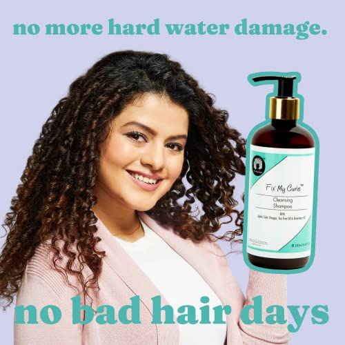 Fix My Curls Cleansing Shampoo for Curly Hair & Wavy Hair| Enriched with Apple Cider Vinegar, Tea Tree & Rosemary Oil| Anti-Frizz, Anti-Itch | pH Balanced, Paraben-Free, Silicone-Free & Sulfate-Free 250ml