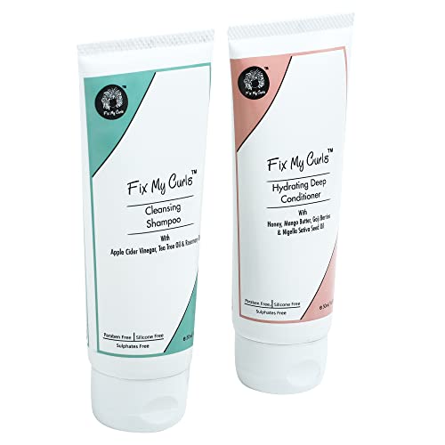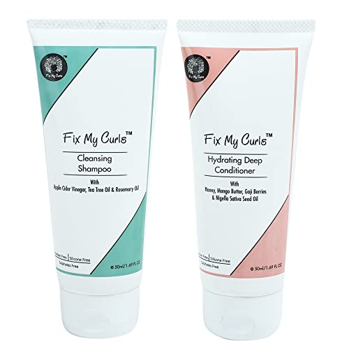 Fix My Curls Travel Size Cleanse & Condition Bundle with Cleansing Shampoo Hydrating Deep Conditioner for Curly and Wavy Hair Sulphate & Silicone Free Enriched with Apple Cider Vinegar and Shea Butter CG Friendly (50gm Each)