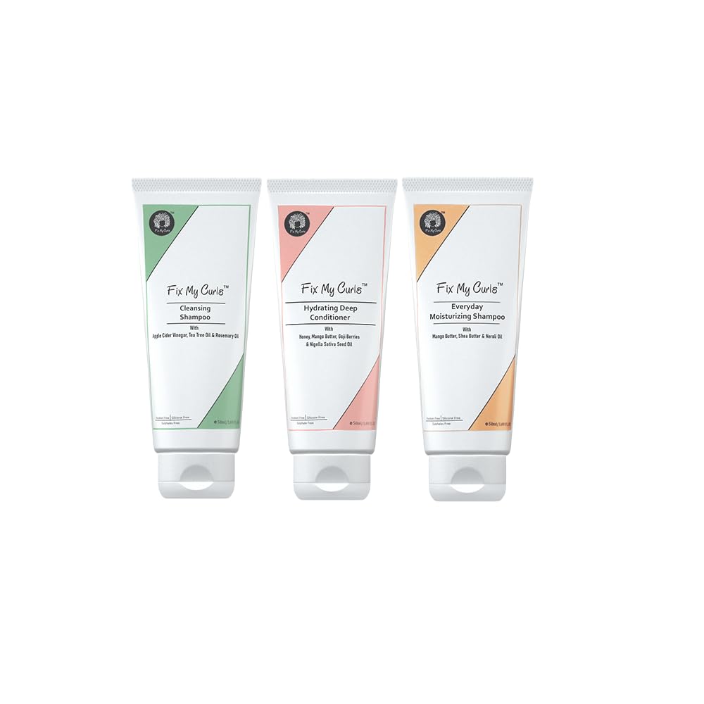 Fix My Curls Wash Day Trio | Cleansing & Moisturizing Shampoo, Hydrating Deep Conditioner | Silicone & Sulphate Free | For Curly, Wavy Hair| 50ml each