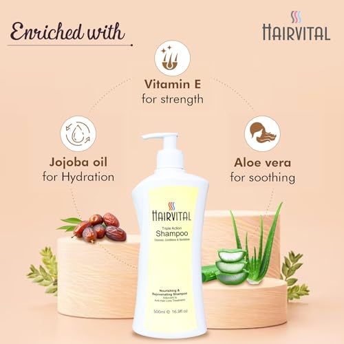 Hairvital Triple Action Shampoo with Goodness of Aloe Vera Jojoba Oil and Vitamin-E (100 ml x Pack of 1) (500ml (Pack of 1))