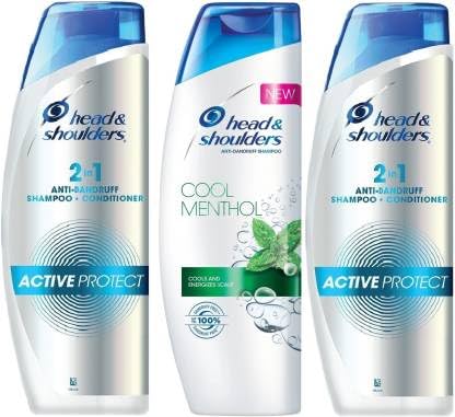 HEAD & SHOULDERS Anti Dandruff 1 Cool Menthol Shampoo & 2 Active Protect Shampoo+Conditioner Each 340ml Pack Of 3 (1020 ml)
