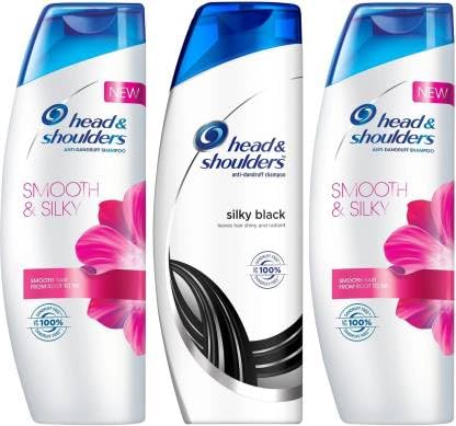 HEAD & SHOULDERS Anti Dandruff 2 Smooth & Silky And 1 Silky Black Shampoo Each 340ml Pack Of 3 (1020 ml)