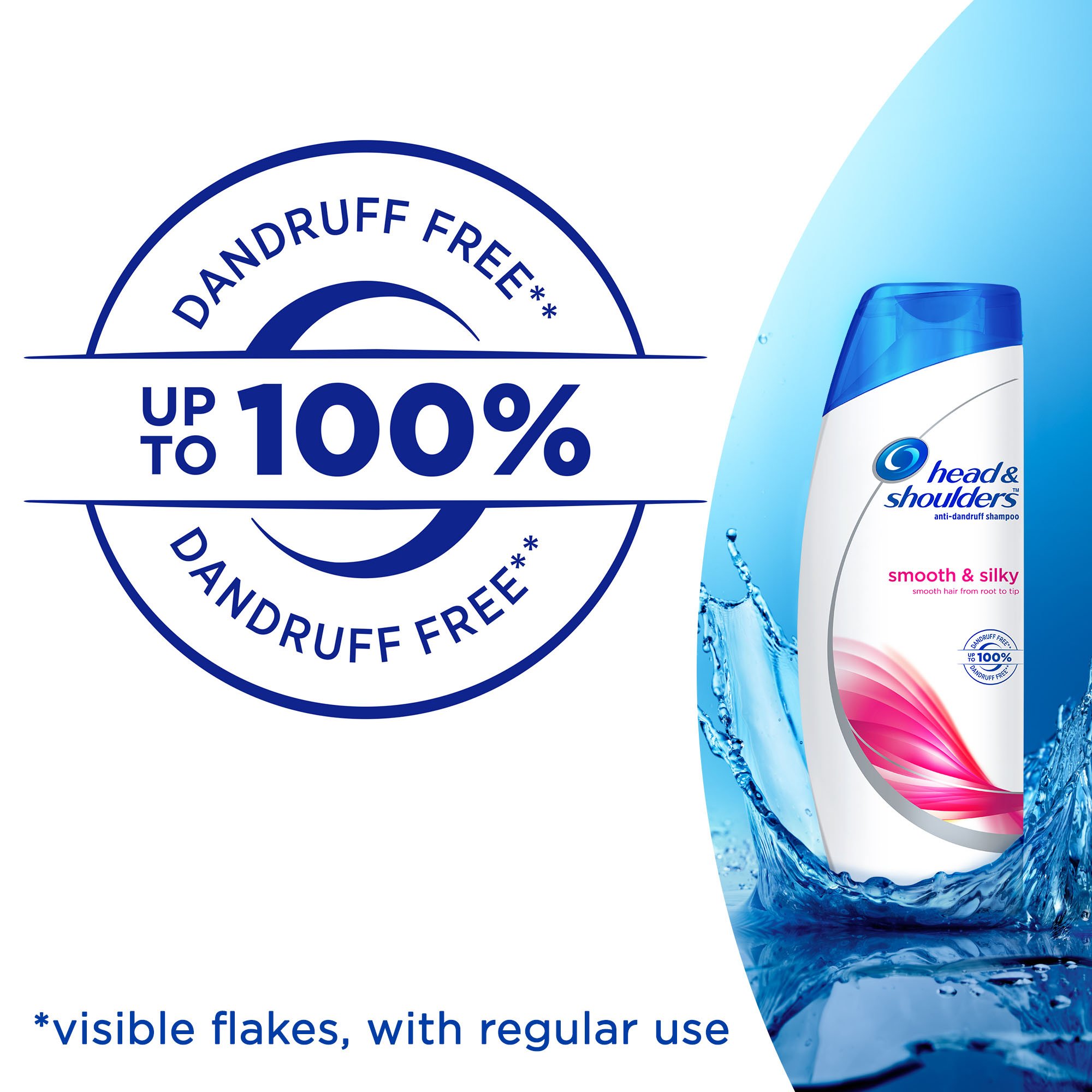 Go from dry and frizzy hair to smooth and silky hair in just one wash. Head & Shoulders Smooth & Silky Anti-Dandruff Shampoo is formulated with added moisturizers to cleanse and re dry frizzy hair and leave you with dandruff free hair*. Go ahead run your hands through your hair again. (*visible flakes only with regular use) - 24 hour frizz control for smooth beautiful-looking hair - Gentle pH balanced formula for everyday use even on color treated hair