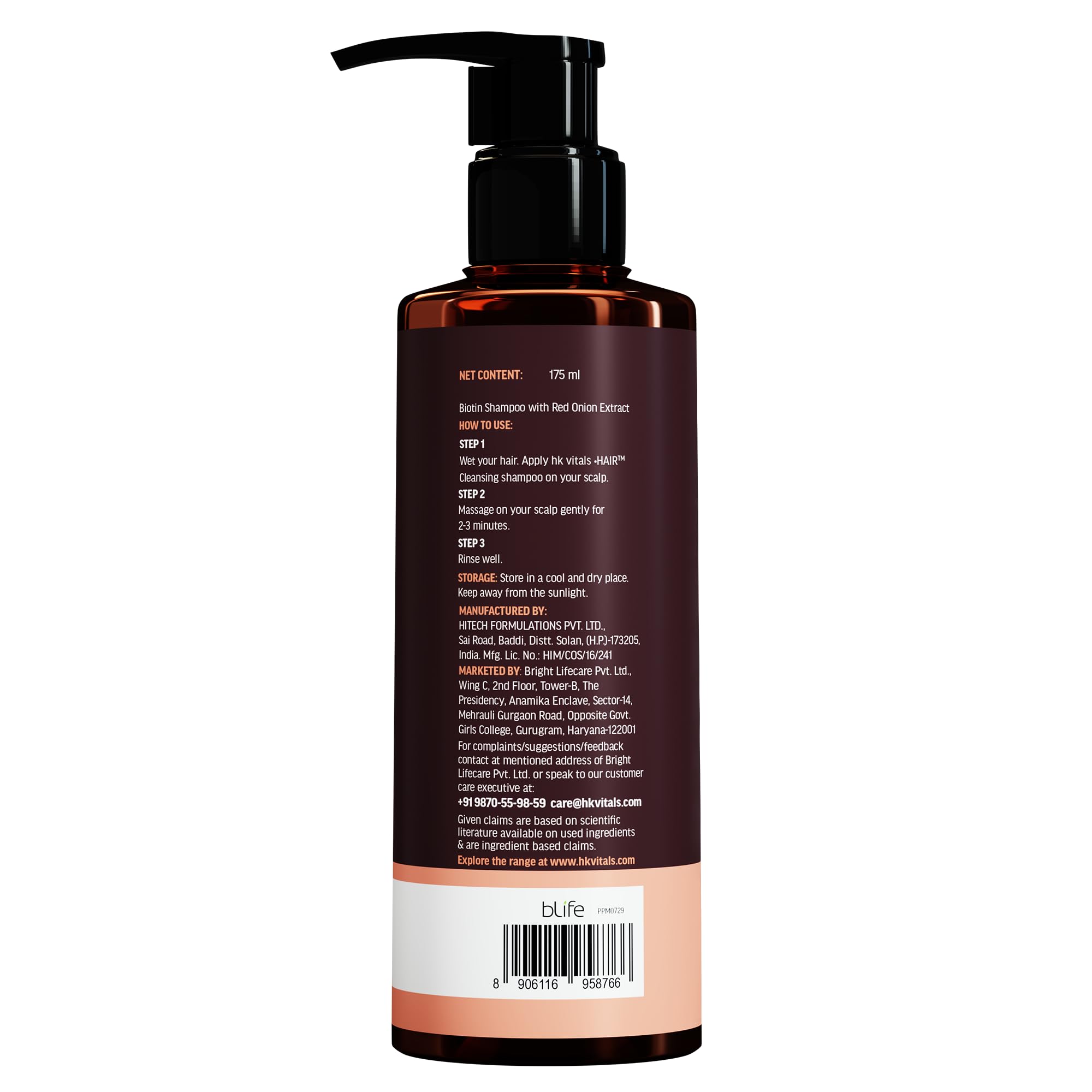 HOW TO USE: Lather the shampoo on your palms & then work into the roots of your hair. Massage gently & then rinse your hair thoroughly. For best results use along with HK VITALS Biotin Hair Conditioner Hair Mask & Hair Tonic