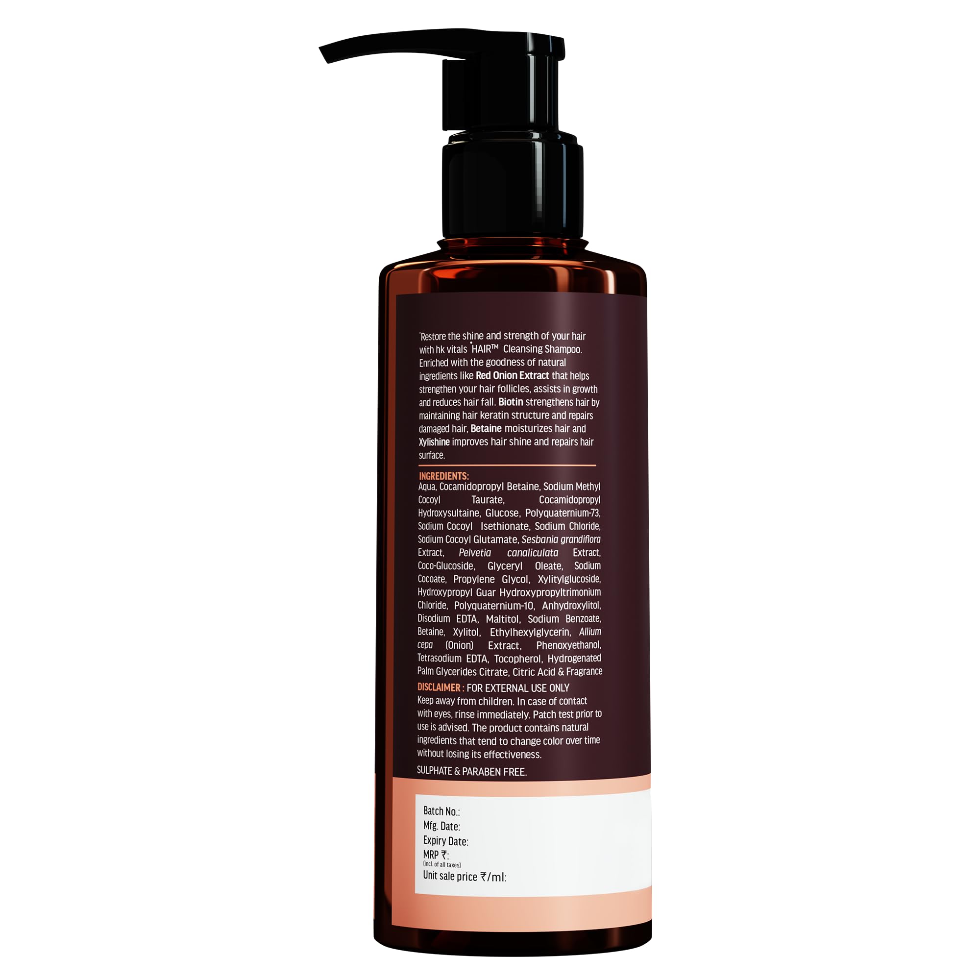 BIOTIN FOR HAIR GROWTH & KERATIN PRODUCTION: hk vitals Hair Cleansing Shampoo is specifically formulated for thinning dry & dull hair. It helps promotes hair growth keratin production & regeneration of hair follicles