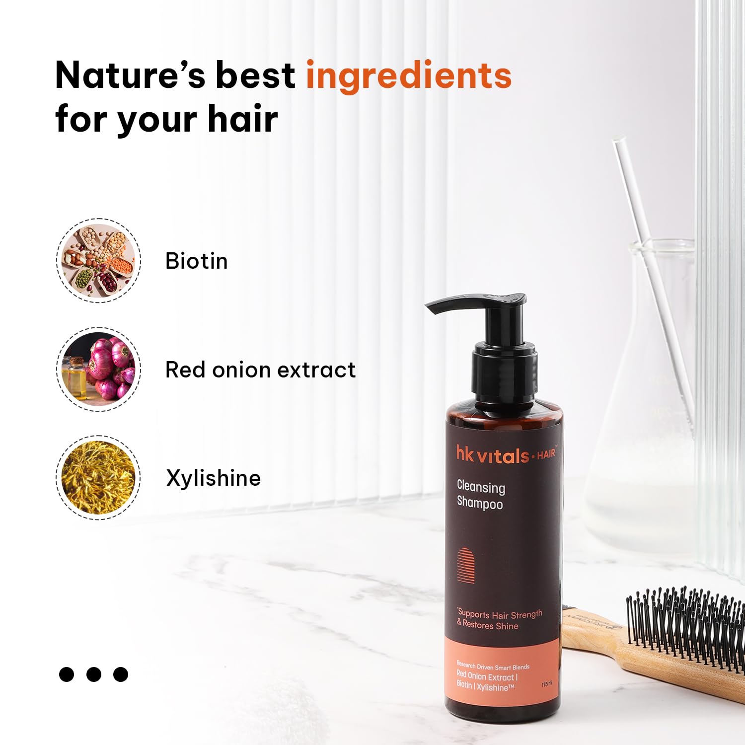 hk vitals Hair Cleansing Shampoo for Women & Men (175ml) | Supports Hair Strength & Restore Shine with Red Onion Extract | Biotin | Xylishine
