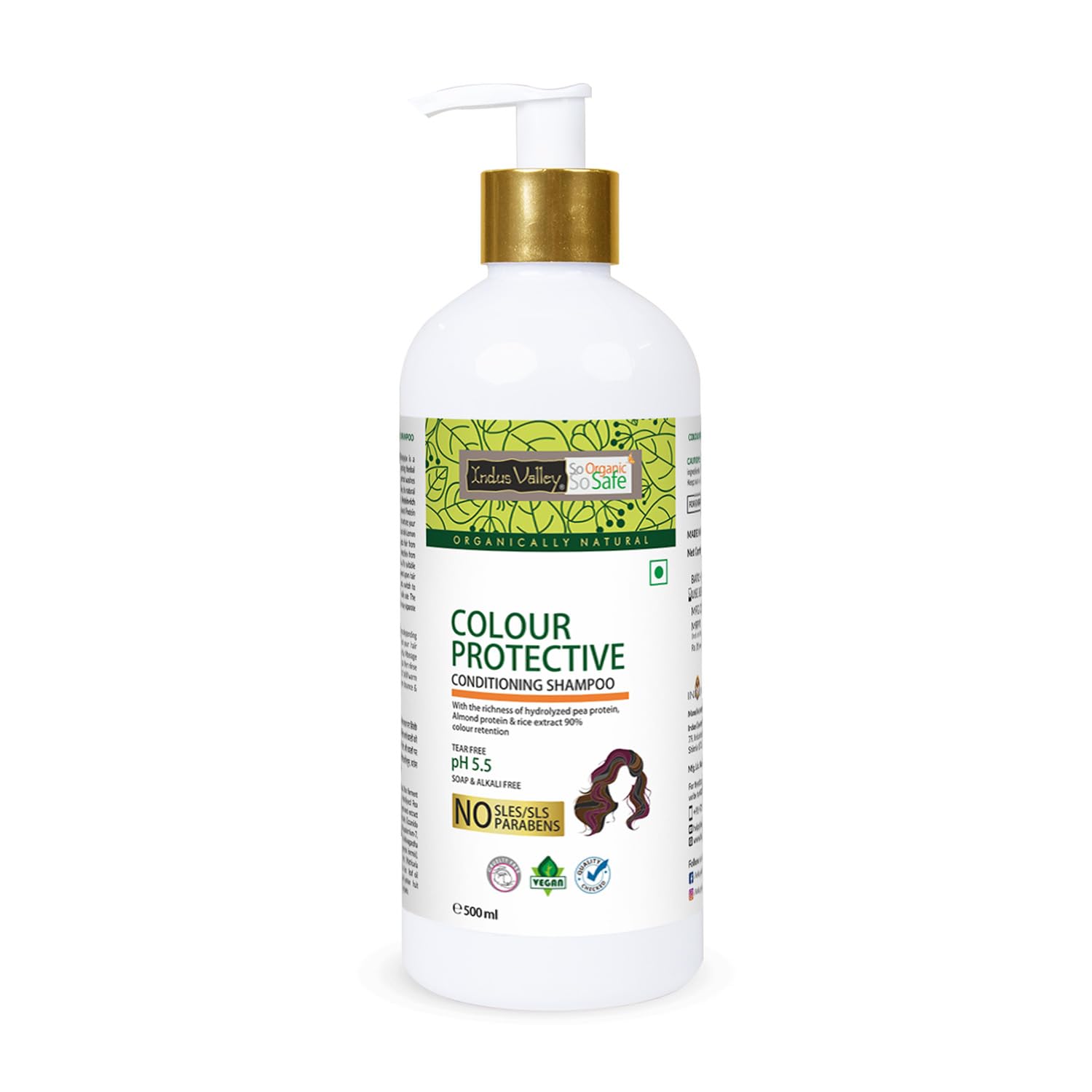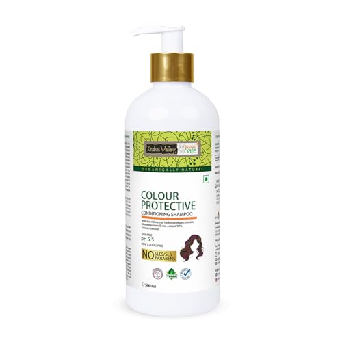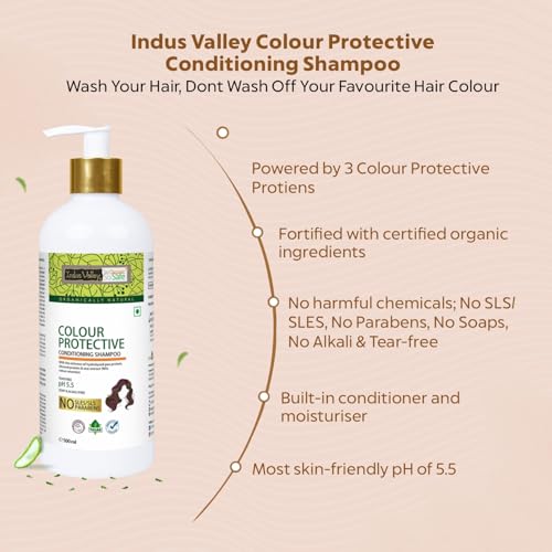 Indus Valley Bio-Organic Colour Protective Conditioning Shampoo comes loaded with vitamins C E K B9 and powerful UV filters. It helps darken the colours imparted by hair dyes protects the scalp and hair from the UV rays of the sun dirt and pollution. Its deep cleansing effect will open up your scalp pores allowing deep nourishment of your scalp and hair roots ultimately improving hair texture and shine.
