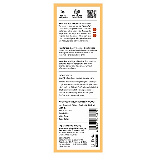 Jiva Almond Shampoo 200 ml | 100% Pure & Natural | Nourishes Hair, Prevents Hair Loss, And Promotes Hair Growth | Pacifies Vata Dosha | Suitable For All Hair Types (Pack Of 3)