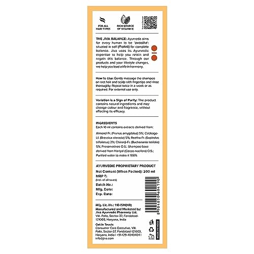 Jiva Almond Shampoo is the perfect blend of herbs that nourishes the roots of hair. Almond included in the right balance pacifies vata dosha. We have some special ingredients too to make your hair silken smooth and lustrous. The regular use of almond shampoo also nourishes the nervous system and helps to strengthen the centers of brain connected with various senses. Jiva Almond shampoo is specifically beneficial for thin falling hair and is very beneficial for hair growth.
