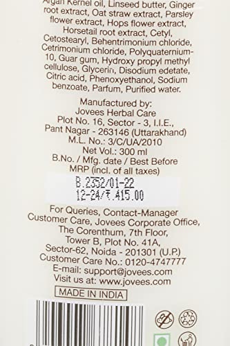 Jovees Herbal Argan Kernel Oil Hair Repair Conditioner For Smoothens, Silky And Tangle Free Hair | Repairs Dry & Damaged Hair | Suitable for All Hair Types- 300ml