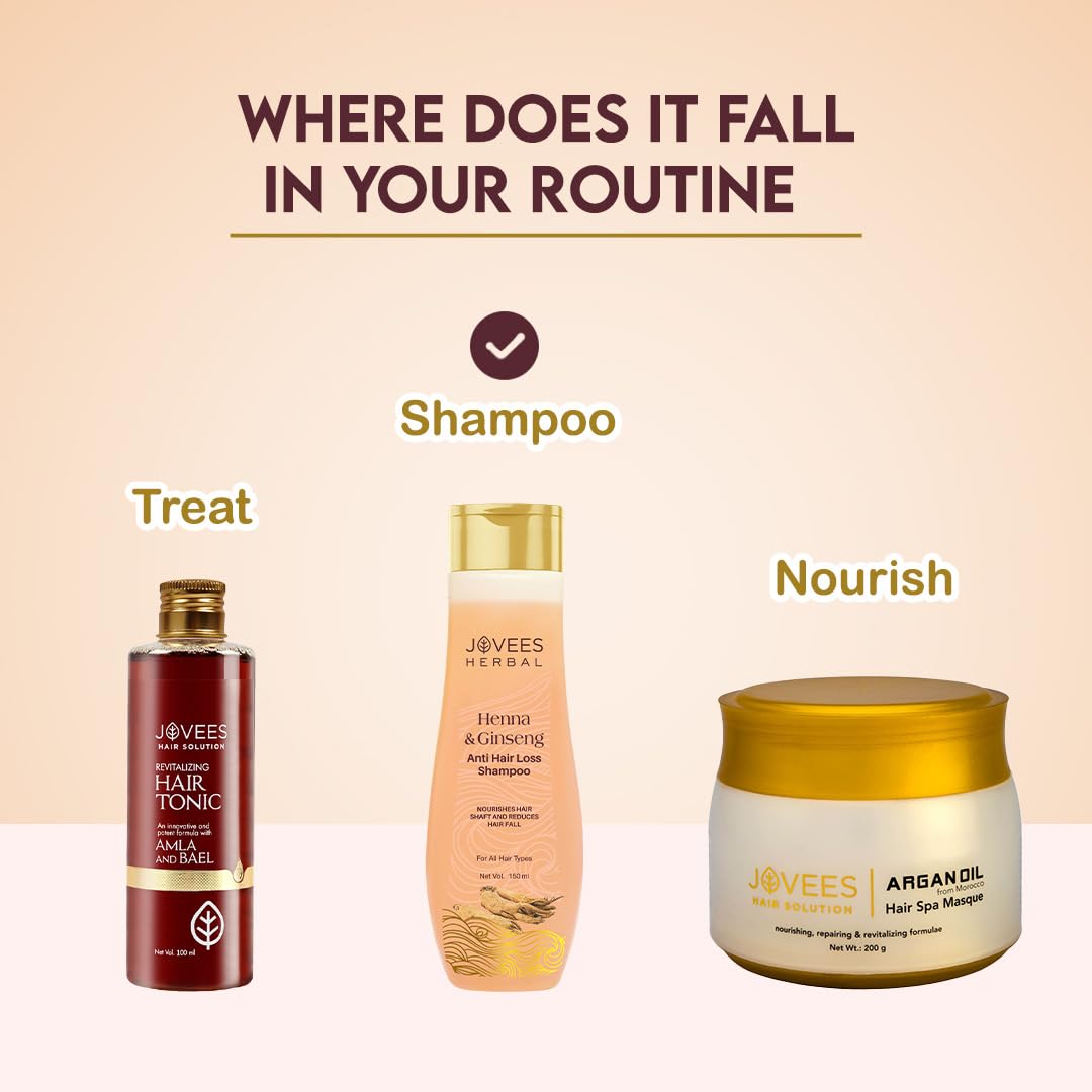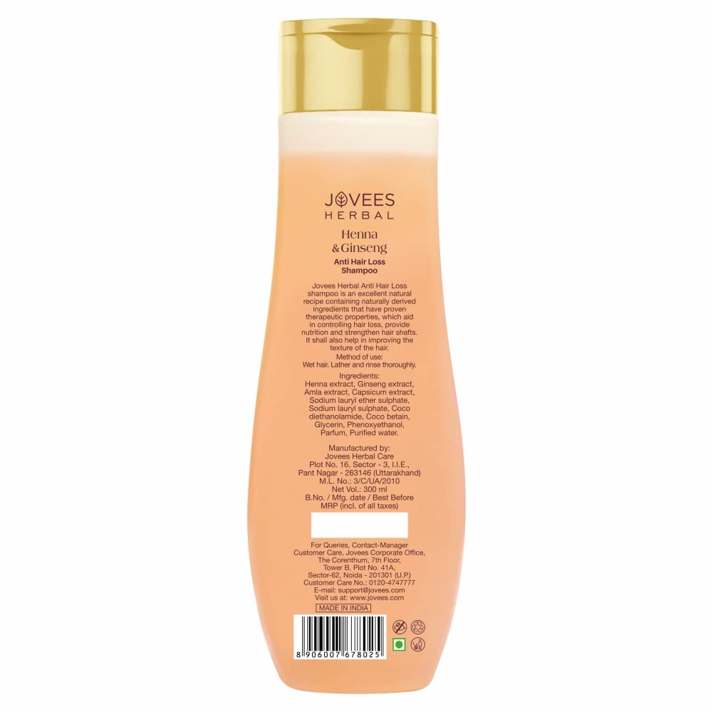 PREVENTS HAIR FALL: Amla Extract in Jovees Henna and Ginseng Anti Hair Loss Shampoo helps reduce hair fall due to its rich source of vitamin C and antioxidants. These nourish the scalp strengthen hair follicles and promote blood circulation leading to hea