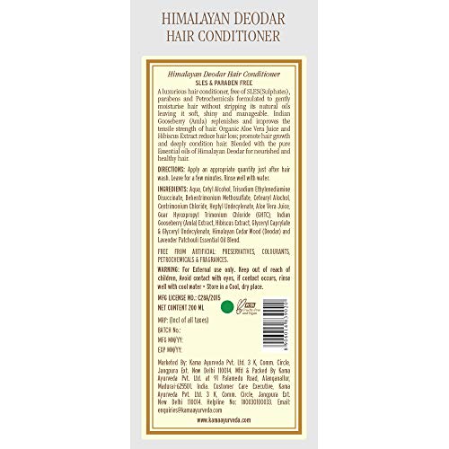 Size:200 ml (Pack of 1)|Design:ConditionerA luxurious hair conditioner free of SLES (sulphates) parabens and petrochemicals formulated to gently moisturise hair without stripping its natural oils leaving it soft shiny and manageable. Indian gooseberry (amla) replenishes and improves the tensile strength of hair. Blended with pure essential oils of Himalayan deodar for soothing nourished and healthy hair.