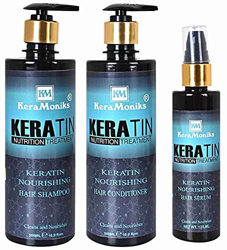 Keramoniks Combo pack of 3- Hair Shampoo 500 ml + Hair Conditioner 500 ml +Hair Serum 125 ml Enriched with luxurious oils that add shine and lustre to hair Enriched with luxurious oils that add shine and lustre to hair Nourishing to make hair shiny and smooth. Hair type- All Hair Type