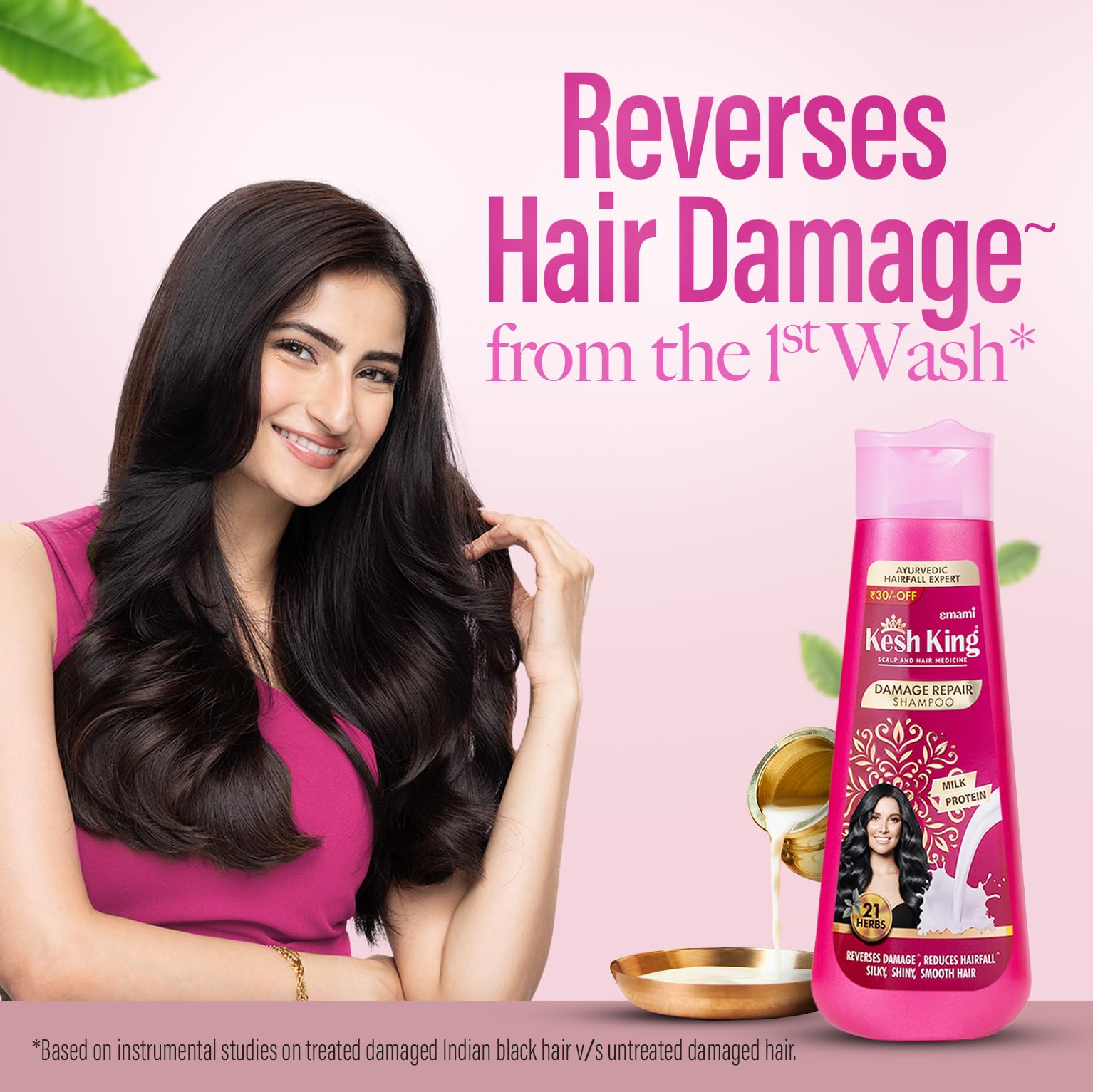 KESH KING Damage Repair Shampoo | with Milk Protein & 21 Ayurvedic Herbs | Reduces Hairfall | Nourishes Hair Roots | Provides Soft & Smooth Hairs | 20.29 Fl Oz (600 ml)