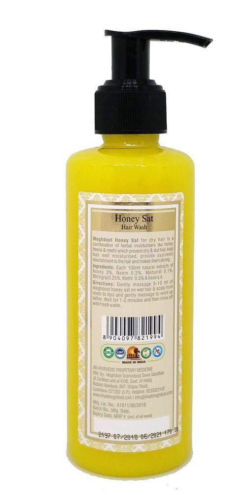 KHADI MEGHDOOT Khadi Honey Sat Shampoo with Extracts of Honey and Neem for Dull Hairs and Split Ends (210 ml)