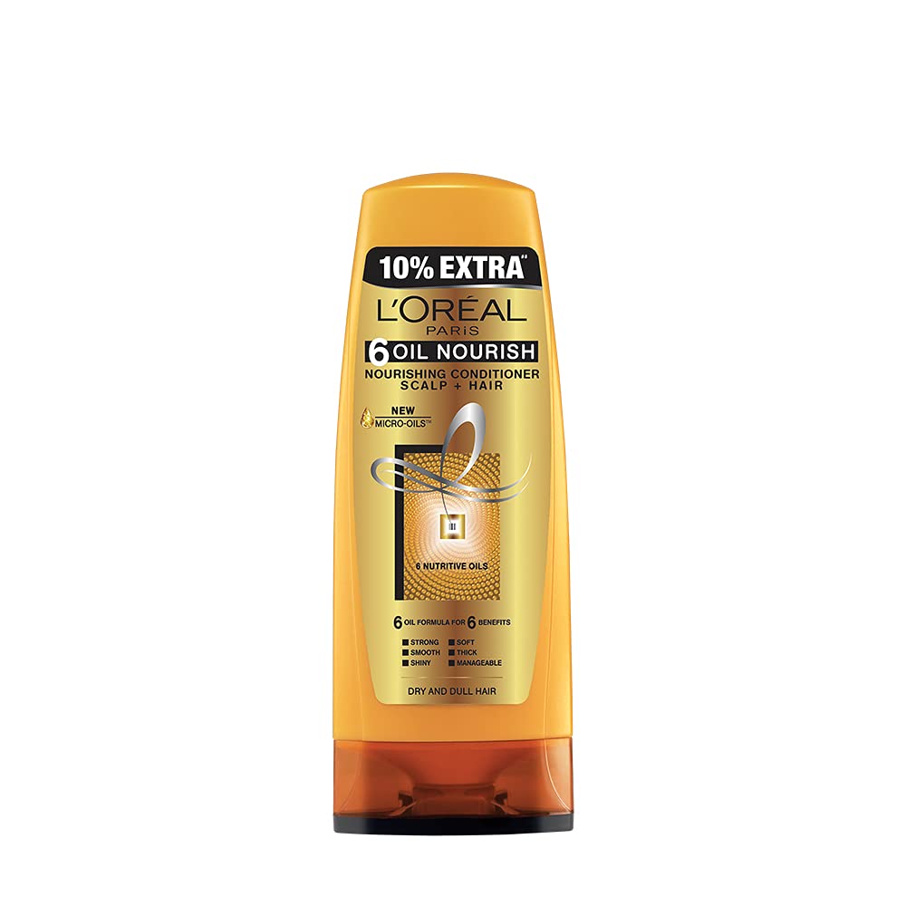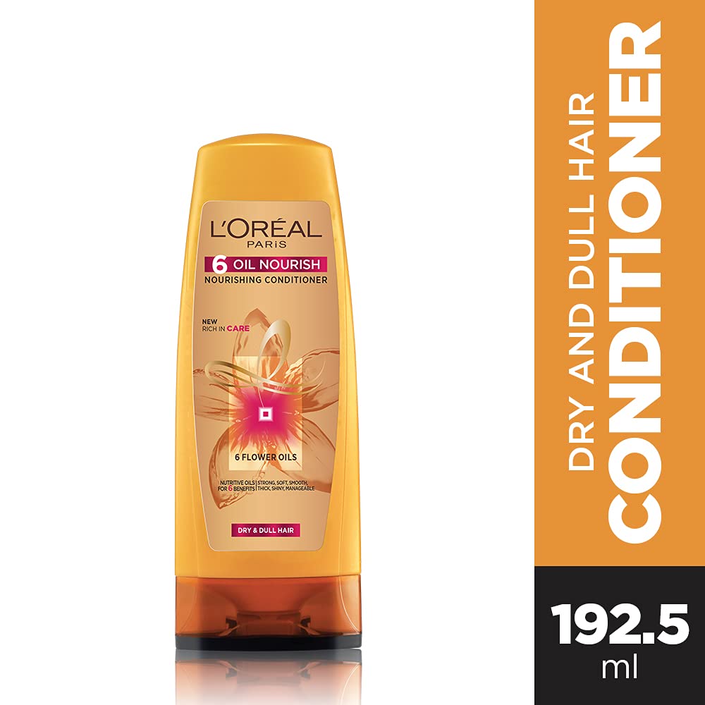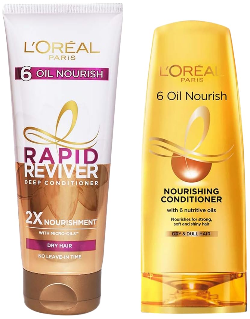 L'Oreal Paris 6 Oil Nourish Conditioner 175ml (With 10% Extra)The 6 Oil Nourish Conditioner a first of its kind from L'Oreal Paris can be used on the scalp. This conditioner provides complete nourishment to your hair giving it the six benefits of the oils used. The L'Oreal Paris 6 Oil Nourish Conditioner is the first of its kind that can be applied on the scalp giving your hair the nourishment it deserves. L'Oreal Paris 6 Oil Nourish Conditione hydrates and nourishes to transform dry lifeless hair to soft and lustrous in just one wash with our expert hair oil system. Hair is sumptuously soft lightweight and brilliantly shiny. For best results use 6 Oil Nourish shampoo and conditioner together.L'Oreal Paris Rapid Reviver 6 Oil Nourish Deep Conditioner 180mlL'Oreal Paris Rapid Reviver range of Deep Conditioners help revive hair in just seconds! It is the 1st daily conditioner that provides 2X more hydration to your hair.