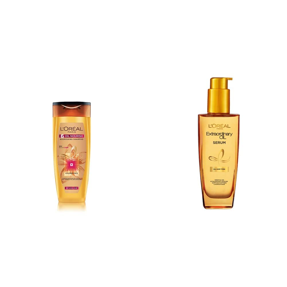 L'Oreal Paris 6 Oil Nourish Shampoo 360ml (With 10% Extra) and L'Oreal Paris Extraordinary Oil Hair Serum for Women & Men 100 ml