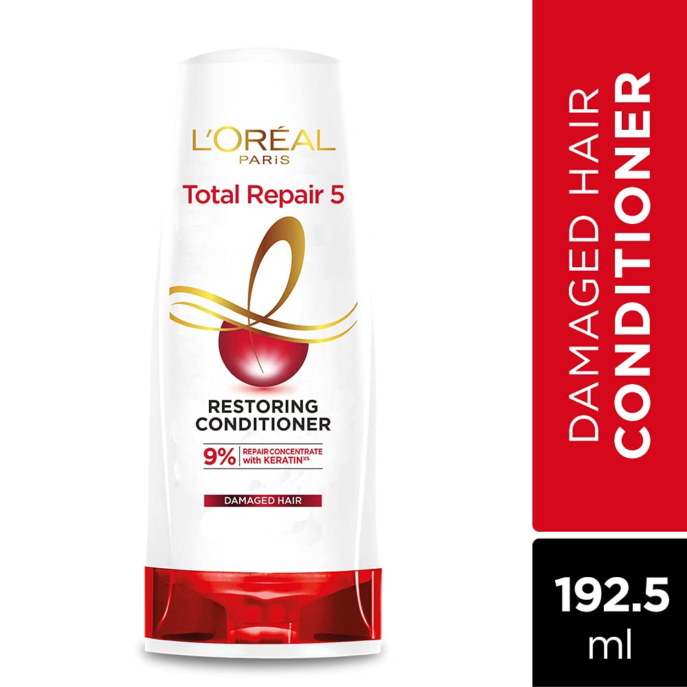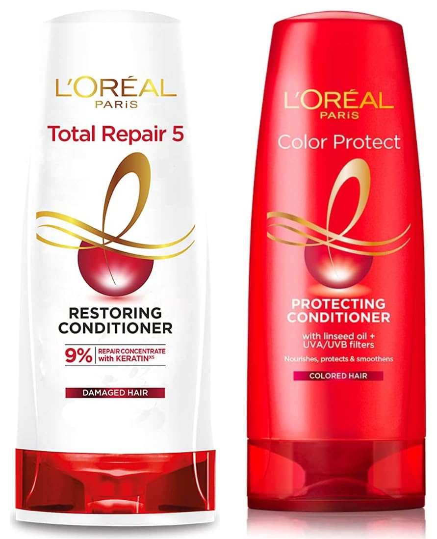 L'Oreal Paris Conditioner Vibrant & Revived Colour For Colour-treated Hair Colour Protect 192.5mlL'Oreal Paris - Colour Protect conditioner nourishes the hair and transforms its surface keeping the hair protected and prolonging the color radiance. The Colour Protect formula with UV filter- Light Reflecting System combines an active nourishing ingredient and filters for color treated hair. Dry hair meet your match. L'Oreal Paris offers hair conditioners for every concern and hair type. Whether you’re looking to moisturize dry hair want a conditioner for colored hair or want to help repair damaged hair with a deep conditioner we have the hair conditioner—and complementary shampoo—that best fits your needs! Highlights: 1. Prolongs Color & Protects Hair 2. Nourishes the hair and transforms its surface 3. Hair feels silky to touch 4. Helps protect the hair fibre from external aggressions and accentuates the color’s radianceL'Oreal Paris Total Repair 5 Restoring Conditioner with Keratin XS 192.5ml5 Problems.1 Solution. L'Oreal Paris Total Repair 5 Repairing conditioner helps fight against the five visible signs of damaged hair - Hair fall dryness roughness dullness and split ends without weighing it down. Damaged hair can lack the natural cement which keeps the hair strong and resilient. To ensure cohesion and strength the L'Oreal L**********s have created Ceramide-Cement technology to replicate the hair’s natural cement targetting the 5 problems. Explore our best hair products to revive and repair damaged hair. Highlights: 1. Helps fight against the five visible signs of damaged hair - hair fall dryness roughness dullness and split ends 2. Conditioner for damaged hair 3. With Protein + Ceramide 4. Fights the 5 signs of damage