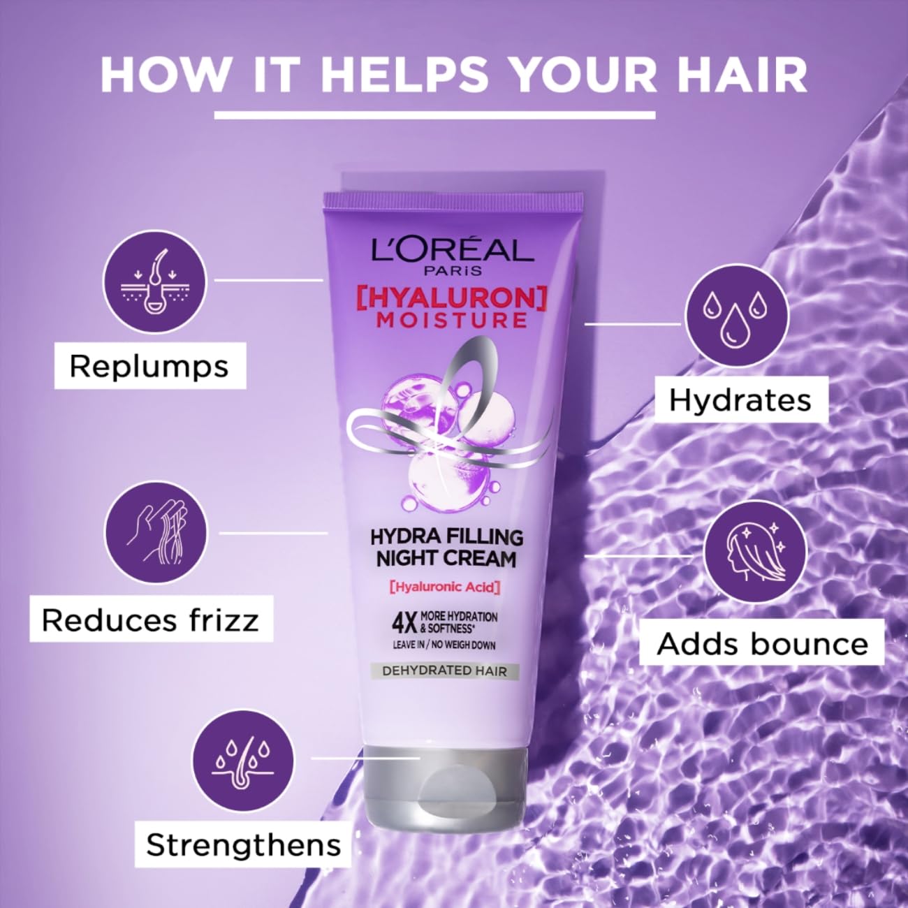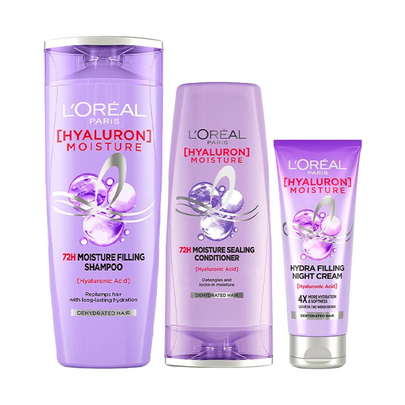 L'Oreal Paris Hyaluron Moisture 3-step Ultimate Hydration kit - Shampoo (340ml) + Conditioner (360 ml) + Night Cream (180 ml)