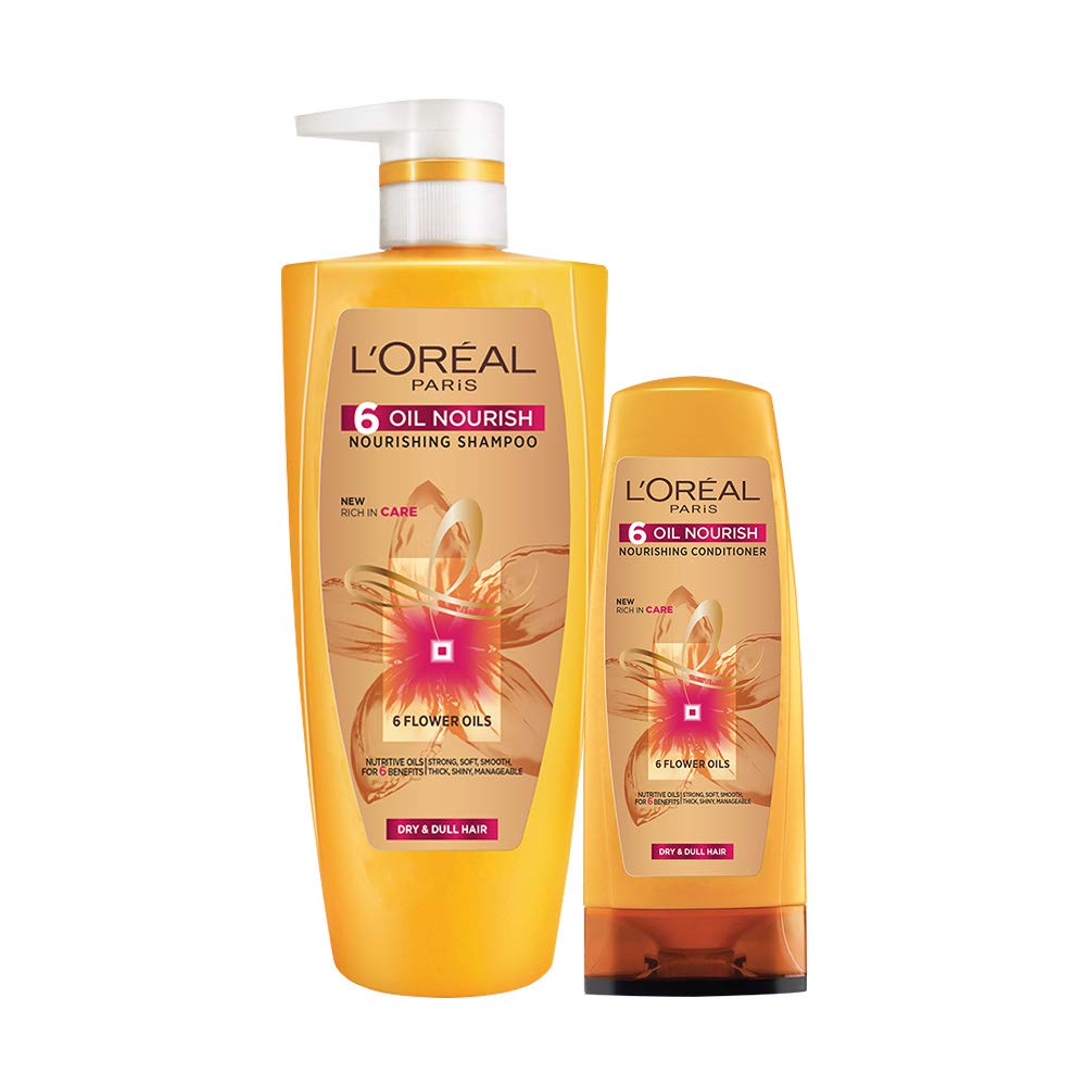 Complete nourishment from root to tip! L'Oréal Paris 6 Oil Nourish shampoo + conditioner set is enriched with an optimised combination of oils - Argan Almond Jojoba Olive Camelina and Coconut - to offer you strong thick and soft hair; whilst leaving it smooth shiny and manageable.