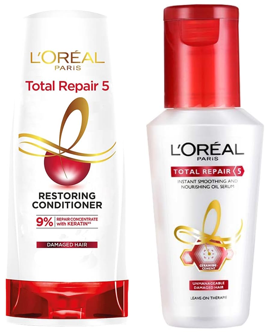 L'OREAL PARIS Fresh Total Repair 5 Serum 80 Millilitres and Total Repair 5 Conditioner for Dull Hair (175 Millilitres)