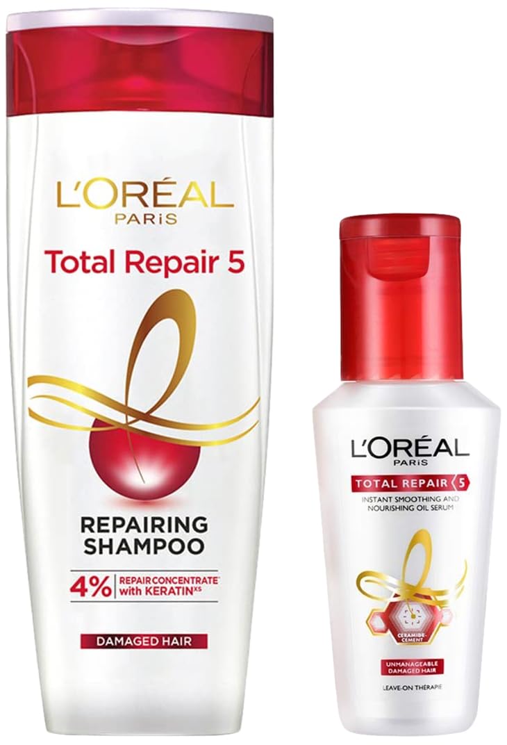 L'Oreal Paris Total Repair 5 Shampoo 175ml (With 10% Extra) and L'Oreal Paris Total Repair 5 Instant Smooting & Repairing OilSerum 40ml