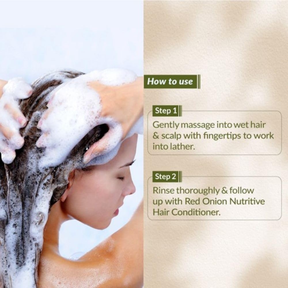 • Key Ingredients: Red onion extract rich in sulphur and antioxidants promotes hair growth and strengthens hair strands.