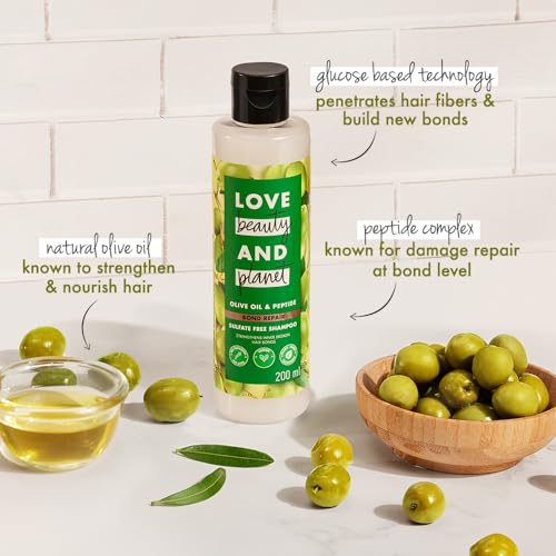 Reverse hair damage with Love Beauty And Planet's Olive Oil & Peptide shampoo a game-changer you cannot miss out on! 90% of women felt their hair is softer & smoother in just 1 week * *based on consumer study 2024 Enriched with patented protein bond complex repair technology olive oil and peptide this shampoo works on a cellular level to repair renew & strengthen hair from the inside out. This protein enriched formula helps to protect your hair against damage caused by UV exposure chemical colour heat treatments and environmental aggressors. Olive oil is known to penetrate deep within the layers & intensely repair hair peptide packed with 22 amino acids known to rebuild damaged bonds & promote hair strength & glucose based technology is scientifically proven to penetrate hair fiber and build millions of new bonds. Resulting in visibly stronger hair that's smoother & fuller! We like to extend our love for the planet and your hair by eliminating nasties like parabens dyes and sulphates from our shampoo. Our goal is a carbon footprint so small it's like we weren't even here. Love Beauty & Planet is PETA Certified cruelty-free and vegan. Globally Love Beauty & Planet does not test on animals. We are committed to acts of love that make our planet cleaner greener and more beautiful.
