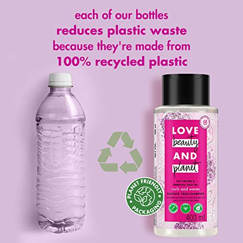 Manage and define your curls with our Curls & Waves Shampoo. Our Rice Water and Angelica Seed Oil Curl Defining Shampoo is made with plant-based cleansers. Give your locks a sweet-scented kiss with angelica essence|| ethically sourced from the beautiful countryside of France. How to use it? Simply squeeze|| lather and rinse. Go easy on the tap! For frizz-free|| defined and detangled curls|| pair it with our Love Beauty And Planet Rice Water and Angelica Seed Oil Curls & Waves Conditioner. Our goal is a carbon footprint so small|| it's like we weren't even here. We at Love Beauty & Planet have started our journey by loading our products with natural goodness and packing it in bottles made from 100% recycled plastic. Our delicate scents are infused with natural and ethically sourced oils and extracts. All our bottles are made up of 100% recycled plastic waste and are completely recyclable. Our caps and pumps aren't made from recycled plastics yet|| but we're working on it. Our products are free from added harsh chemicals like parabens|| dyes and phthalates. Love Beauty & Planet is PETA Certified cruelty-free and vegan. Globally|| Love Beauty & Planet does not test on animals. We are committed to acts of love that make our planet cleaner|| greener and more beautiful. *OLD