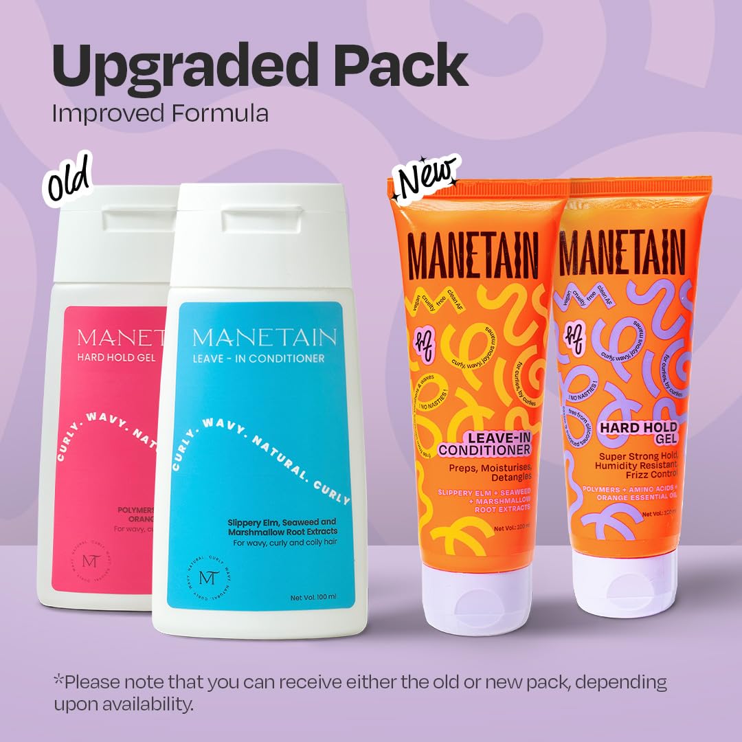 MANETAIN Hydrate & Hold Curl Kit | Leave-in Conditioner 100ml & Hard Holdel 100ml for Curly Hair | Long-Lasting Definition Frizz Control & Moisture for All Hair Types | Vegan Paraben-Free CG-Friendly Styling Duo