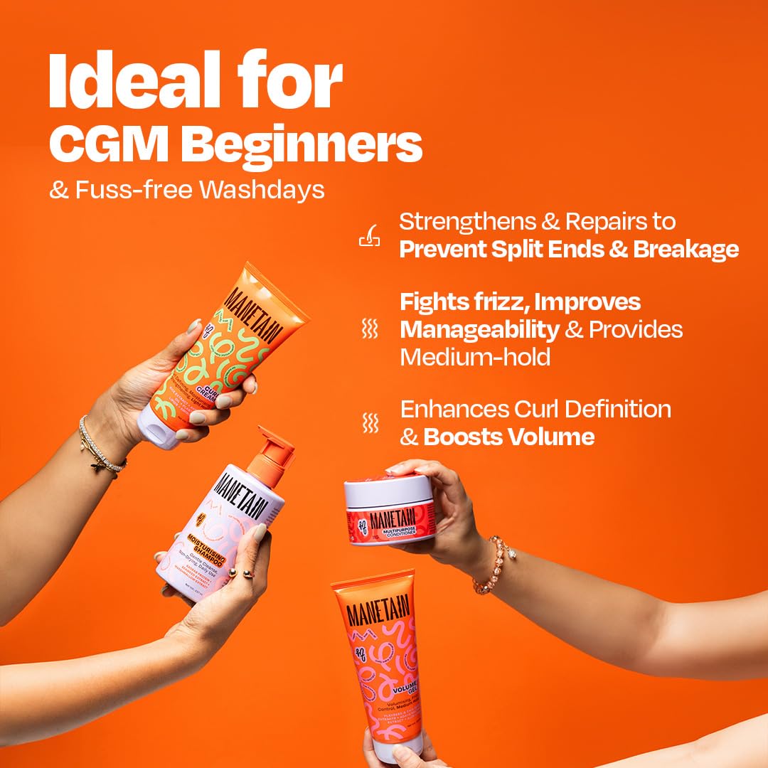 Achieve Beautiful Frizz-Free Curls with the Manetain Washday Bundle!!et ready for your best washday ever with Manetain's Washday Bundle designed to simplify your haircare routine while delivering professional results. Whether you're embracing your natural curls or just starting your curly hair journey this bundle provides everything you need for hydrated defined and frizz-free hair. What's in the Bundle? Moisturising Shampoo (237ml) Aentle cleanser formulated with baobab protein and seaweed extract to hydrate and repair your hair. It strengthens your strands adds shine and helps prevent frizz. Multipurpose Conditioner (200gm) A protein/moisture balanced formula enriched with phytokeratin argan oil and Wavemax. It strengthens nourishes and reduces frizz while enhancing curl definition and maintaining hydration. Curl Cream (100gm) Packed with rice extract and avocado oil this cream moisturises enhances curl patterns and reduces frizz leaving your curls soft shiny and perfectly defined. Volumeel (100gm) Formulated with flaxseed and chia seed extracts this lightweightel provides natural hold and boosts volume while keeping your hair smooth and frizz-free. KEY BENEFITS Hydration Deeply moisturises your curls leaving them soft and manageable. Protein/Moisture Balance Strengthens hair while maintaining a healthy moisture balance. Frizz Control Reduces frizz for smooth polished curls. Curl Enhancement Defines and enhances your natural curl pattern. Vegan & Free from Nasties No sulfates silicones parabens or mineral oils. HOW TO USE Moisturising Shampoo Wet hair emulsify a small amount and massage into your scalp. Rinse thoroughly. Multipurpose Conditioner Apply to wet hair detangle and leave for 2-3 minutes before rinsing. Curl Cream Apply to wet hair rake through and scrunch for defined curls. Volumeel Apply to wet hairlaze over the strands scrunch and air dry or diffuse for volume. Why Choose Manetain? Developed by the founders Hinshara and Yuba followers of Lorraine Massey's Curlyirl Method Manetain's Washday Bundle is crafted to fill theap for CG-friendly products in India. Our bundle simplifies your washday while delivering salon-quality results at home. Safe for all hair types our products are color-safe vegan and free from harsh chemicals ensuring your curls stay healthy and radiant.