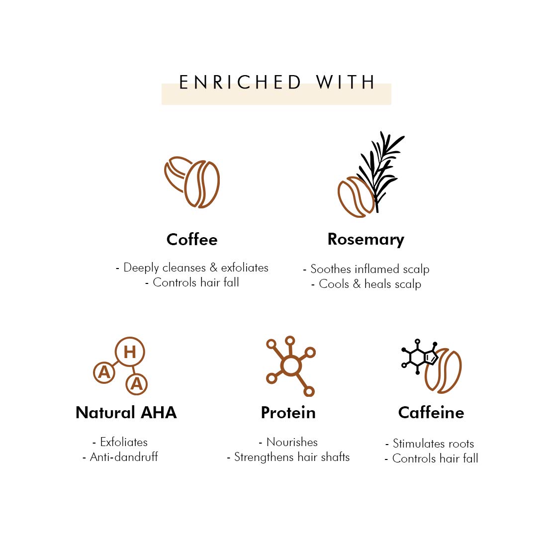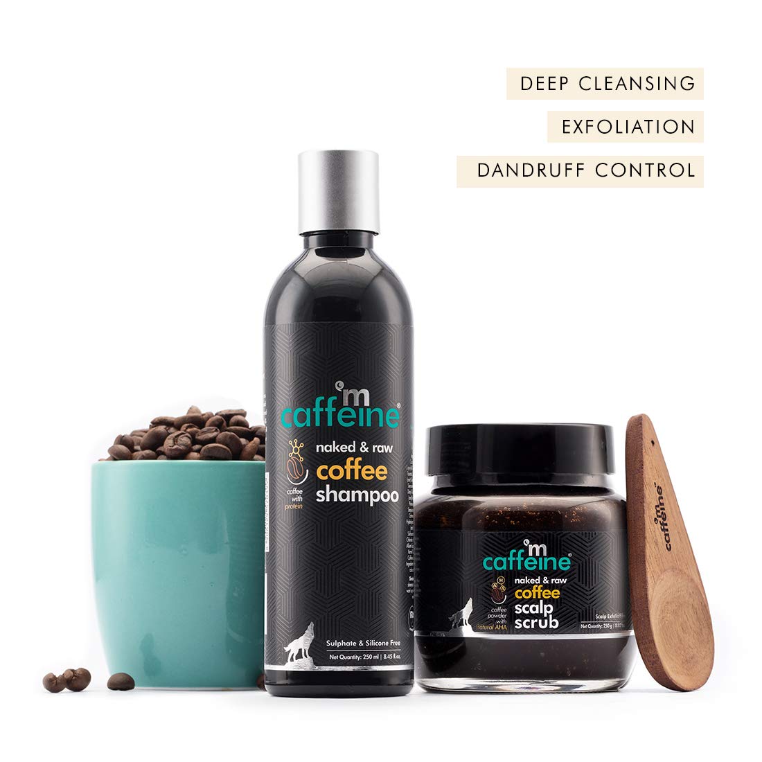 PURE COFFEE & CAFFEINE INFUSED COFFEE FOR HAIR: Infused with coffee this duo has been crafted to meet your hair cleansing requirements with ease. Coffee is known to be a great exfoliator and along with Natural AHA it ensures exfoliation of the scalp clear