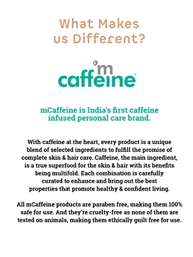 We are a 100% Vegan & Cruelty-free. We have achieved Zero Plastic Footprint to do our bit for the environment. We have pledged to eliminate our plastic pollution by coming together with a Central Pollution Control Board (CPCB) Authorized Recycler to recycle more plastic than we use. Our products are Made Safe & dermatologically tested, with no SLS, parabens, silicones & mineral oils. We believe in Confidence over all skin & body biases. Redefining the age-old notions of beauty associated with colour, we never sell insecurities. We have vowed not to make fairness products. At mCaffeine beauty has no colour or gender. It's about you. You are a revolution, a culture, a routine, a high, and essentially now - a Lifestyle. You are Bold, Young and Confident.