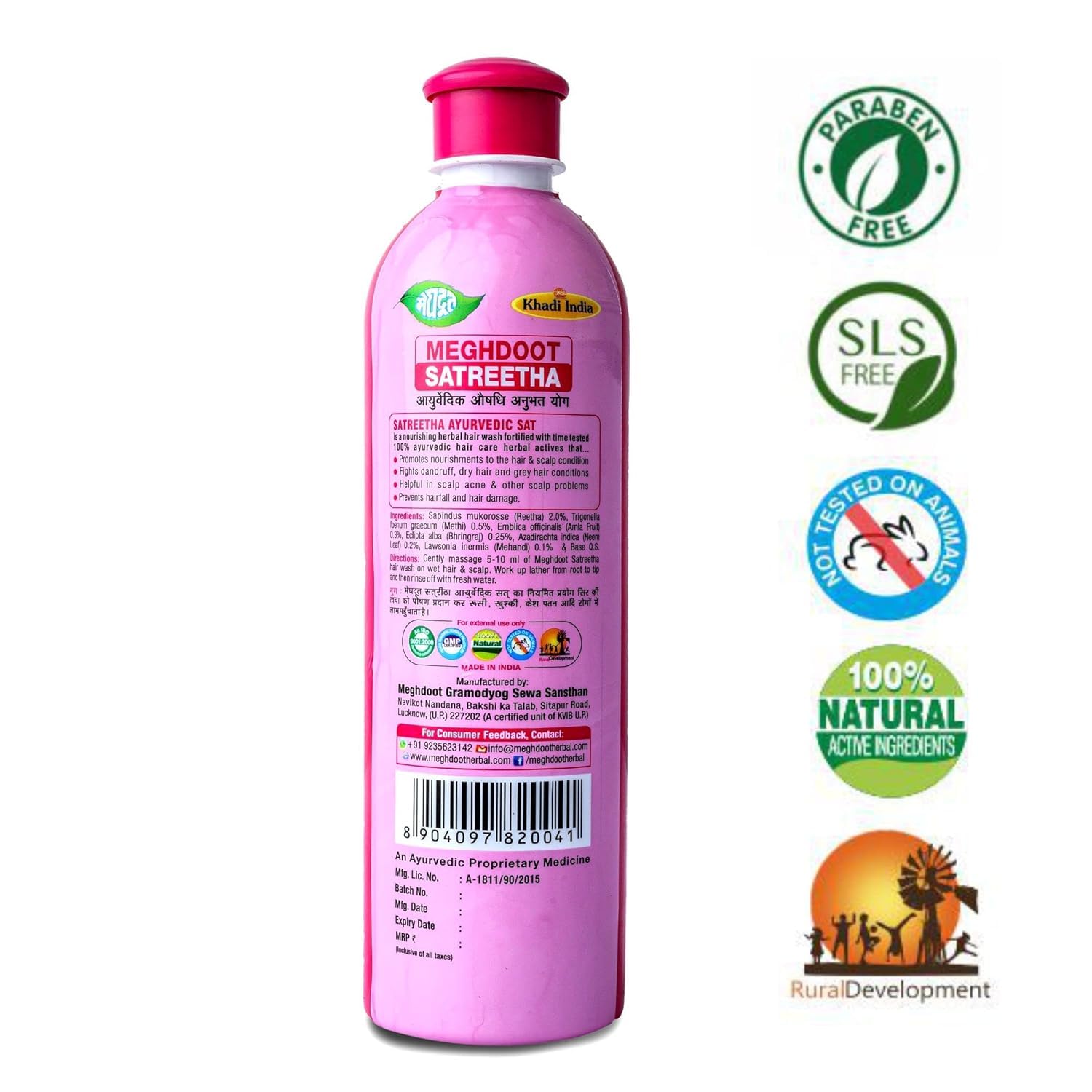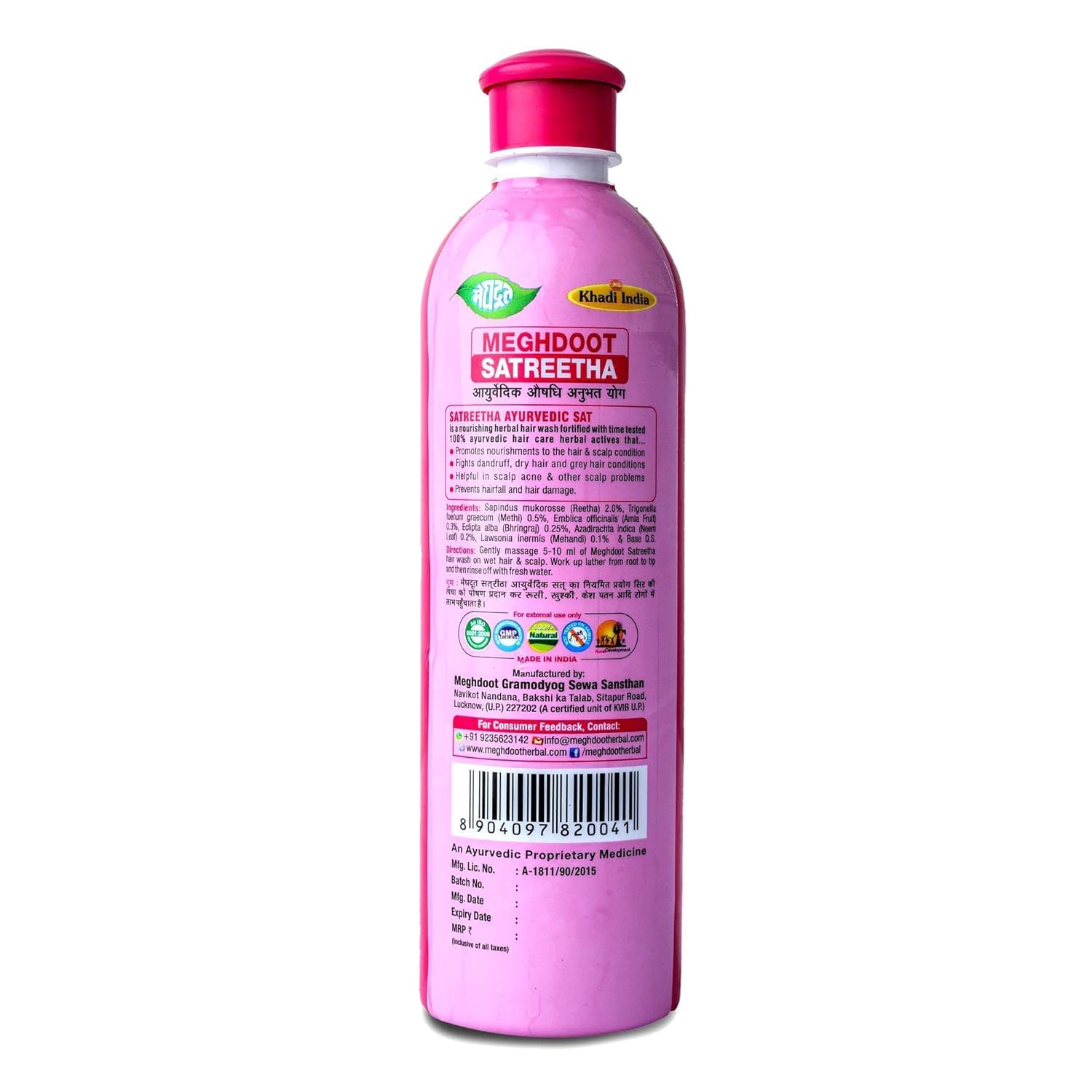 Meghdoot Satreetha Ayurvedic Shampoo is a combination of natural extracts that acts as a hair cleanser and is useful in controlling dandruff and scaly scalp condition. It also simulates healthy hair and scalp. It cleans and conditions the hair leaving them soft and silky. Key Ingredients: Soapberries(Sepindus Emarginatus) Acacia Rugate Indian Gooseberry(Embablica Afficinal) Neem(Azadirachta Indica) Amla Spikenard(Nardostachys Jatamausi) Valeriana wallichii(Valeriana Jatamausi)