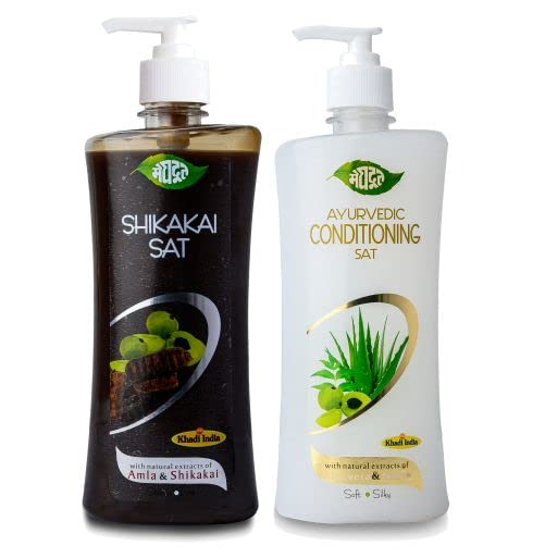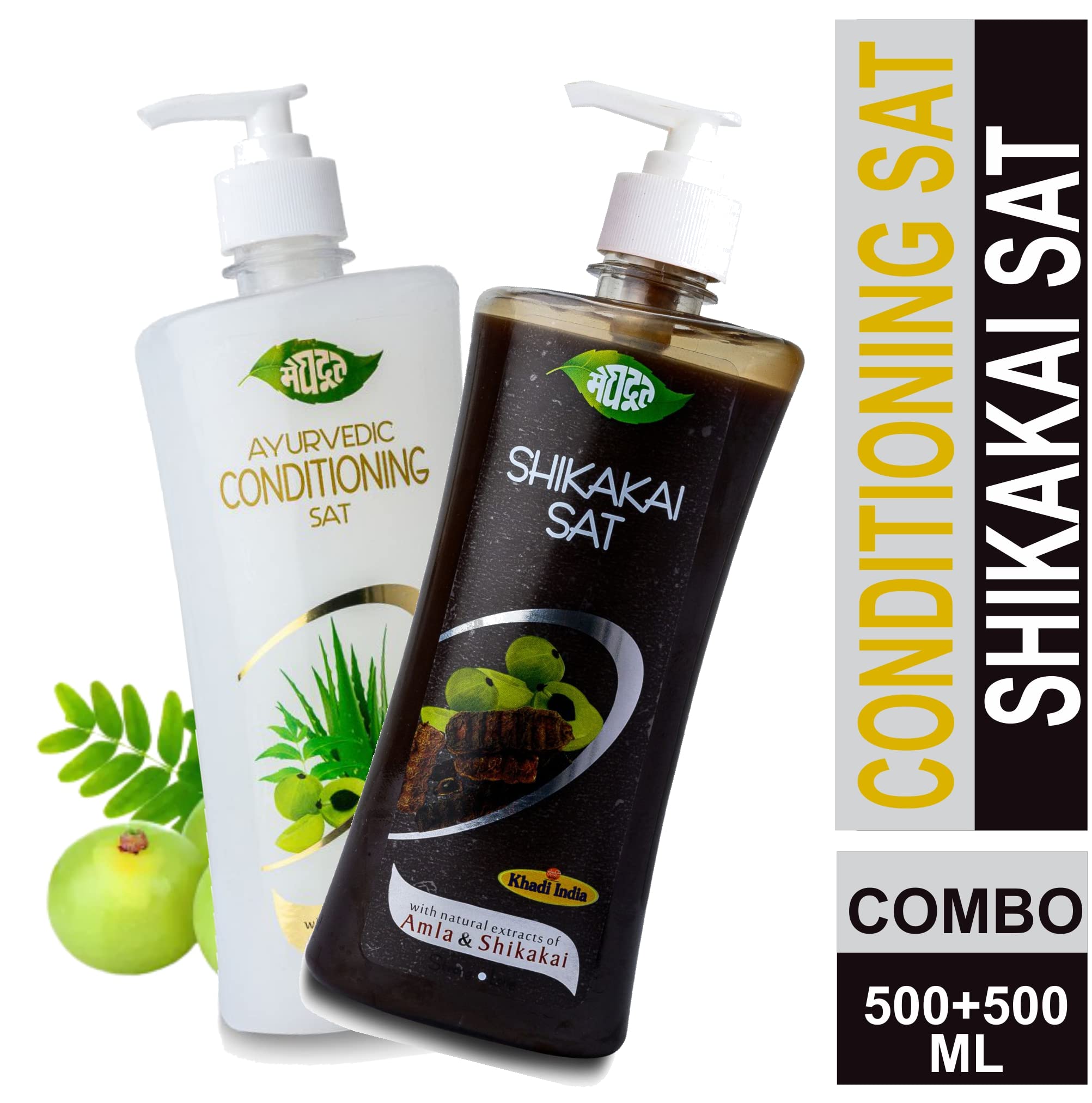 Meghdoot Ayurvedic Shampoo Combo Pack Of Shikakai Shampoo With Amla 500ml And Conditioning With Aloevera And Neem 500ml For Dry And Damaged Hair (Pack of 2)