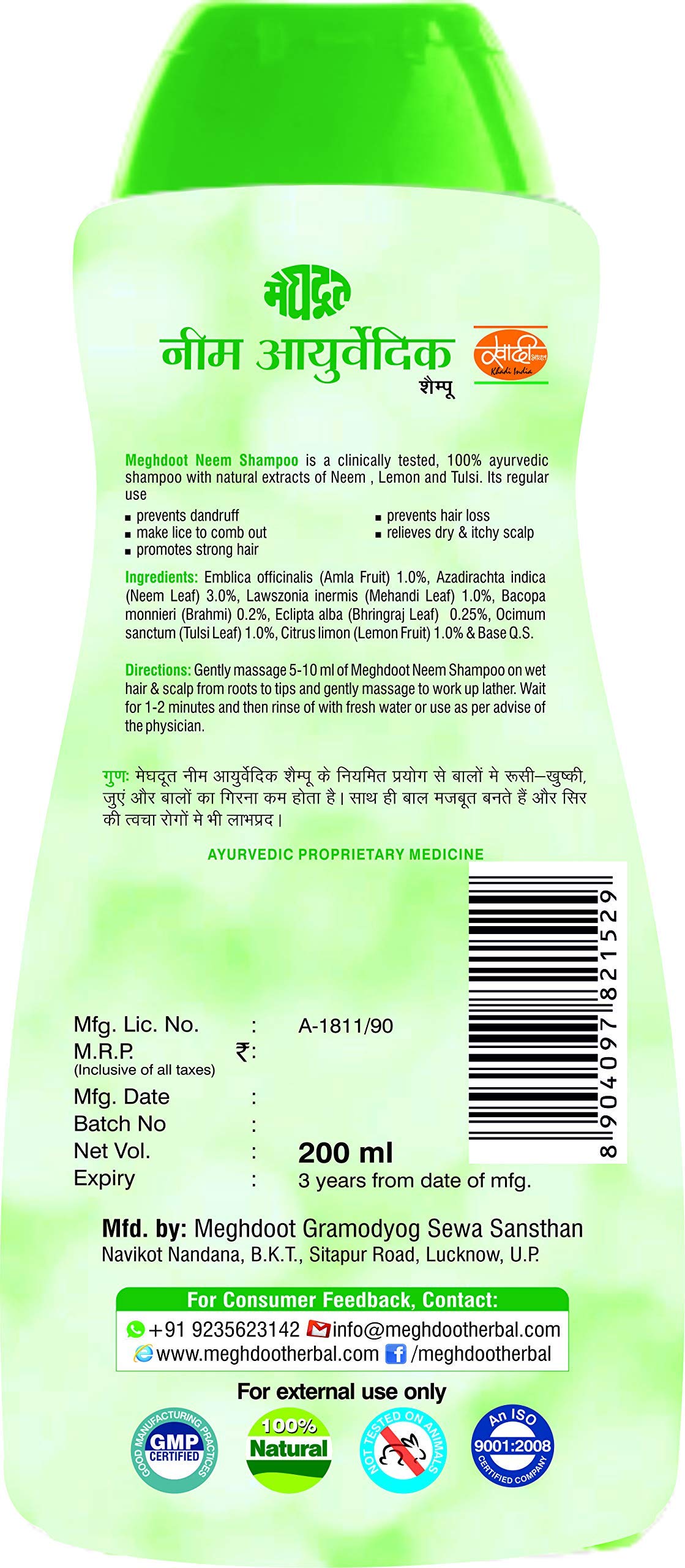 Meghdoot Neem Plus Ayurvedic Shampoo Enriched With Extract of Neem Alma and Lemon for Dandruff Control and Lice Control Scalp 500ml Pack of 1