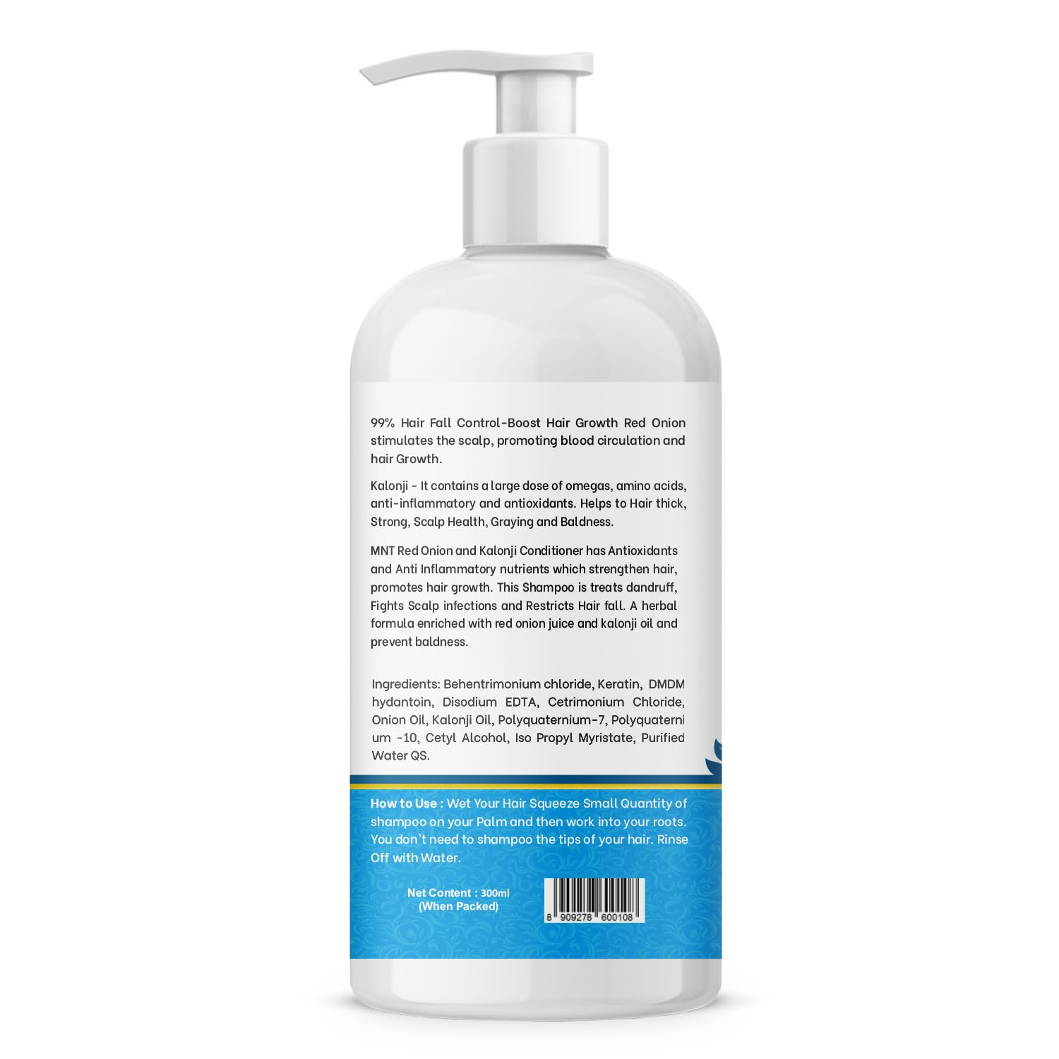 MNT Red onion & kalonji hair conditioner helps to reduce frizz by smoothing the hair and adding moisture to the hair. Conditioner helps to detangle hair by lubricating the strands and making them easier to slide past each other. This is especially helpful for people with curly or textured hair. Hair conditioner can help to protect hair from damage by coating each strand with a layer of film.